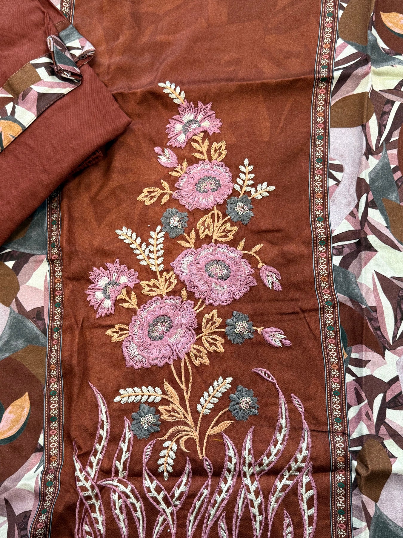 Top Pure Lawn  Digital printed Premium quality... beautiful embroidery panel on front...... Extra lace detailing  on sleeve and front...