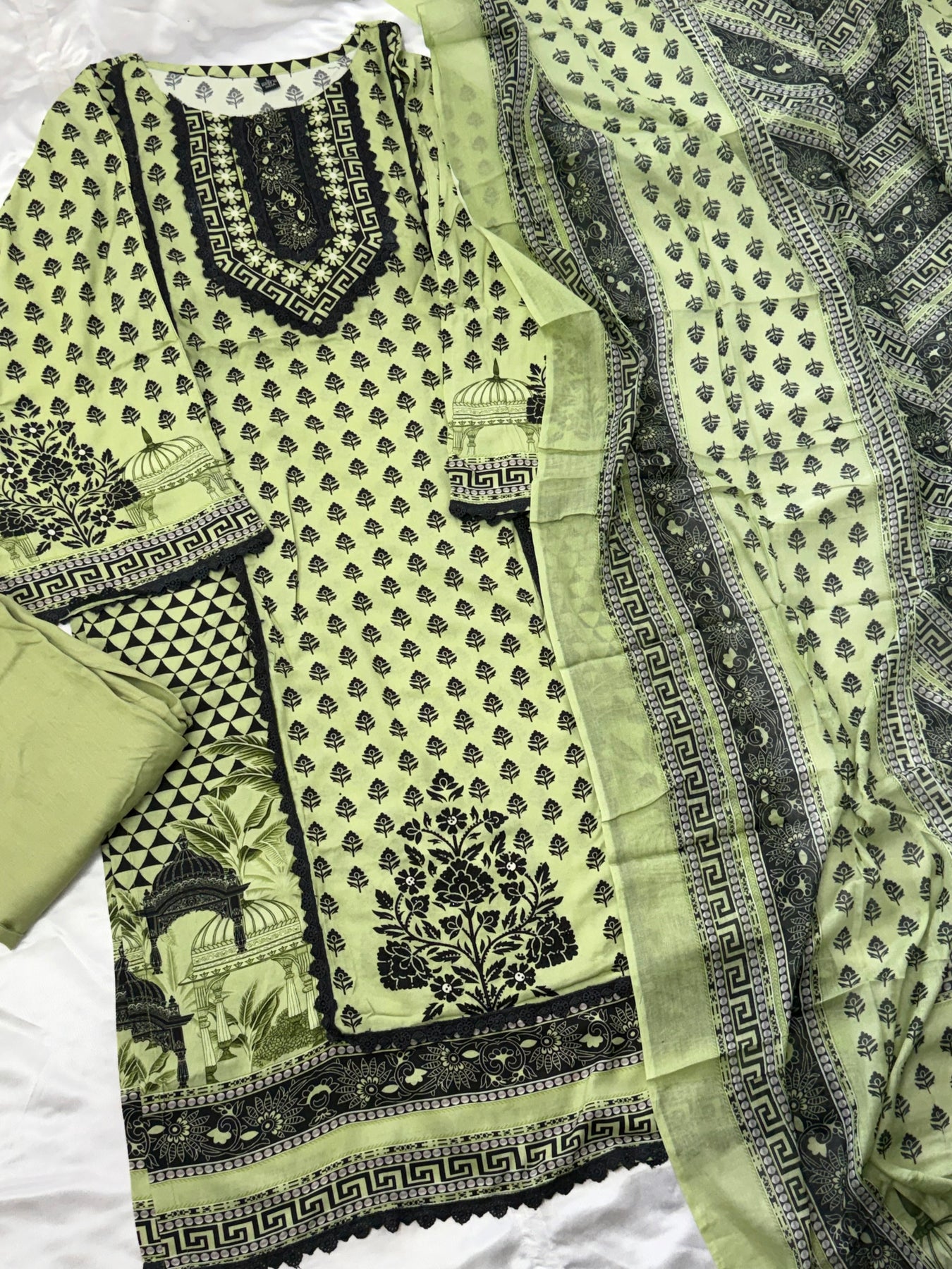 Top Lawn cotton Digital printed....embroidery on Neck...... extra lace detailing  on sleeves,neck and front...