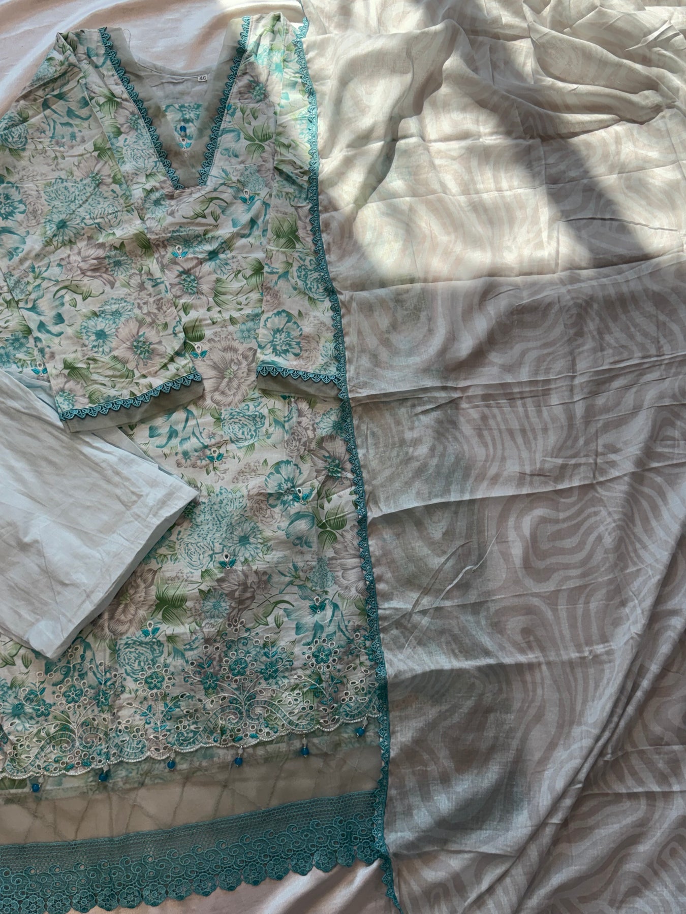 Sleeves printed with lace and organza detailing length..18inches