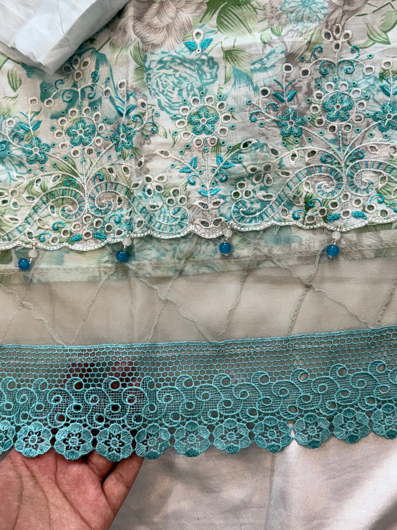 Top Lawn cotton Digital print......Beautiful.lace and organza detailing on top front...