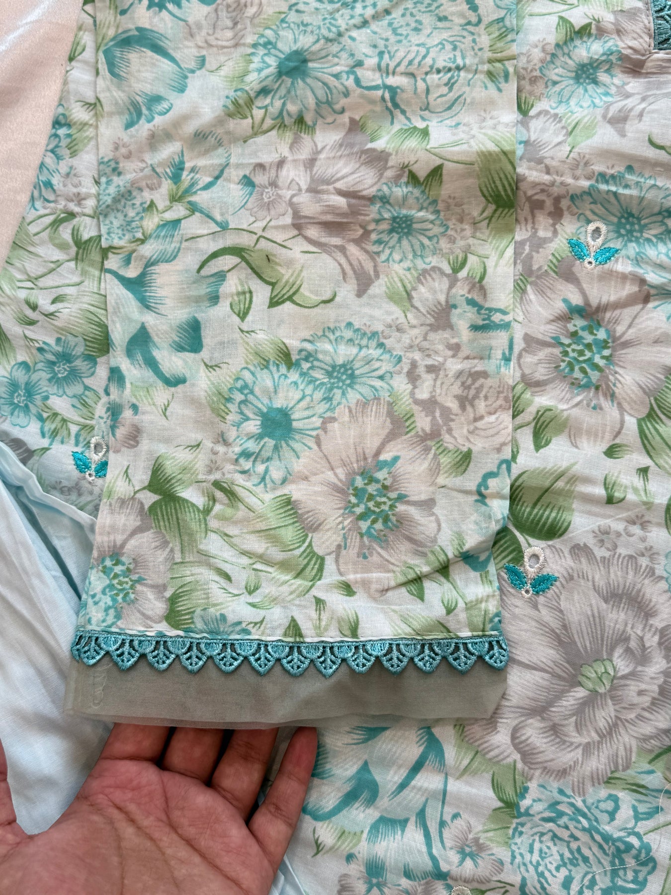 Cotton stitched pant with lace and organza.... length 39 inches