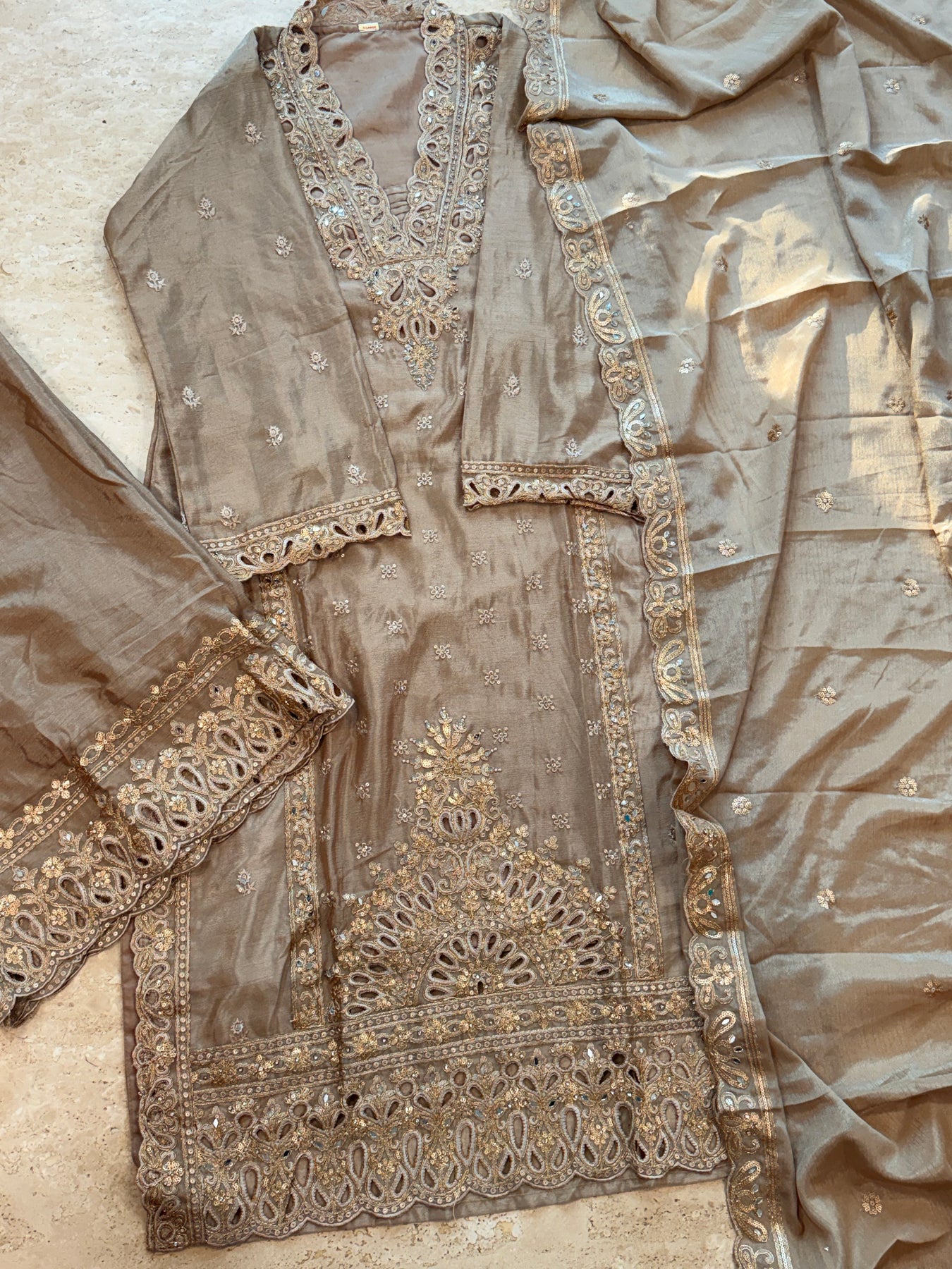 Cutwork embroidery on sleeves  and Daman.. Sleeves length 24 inches