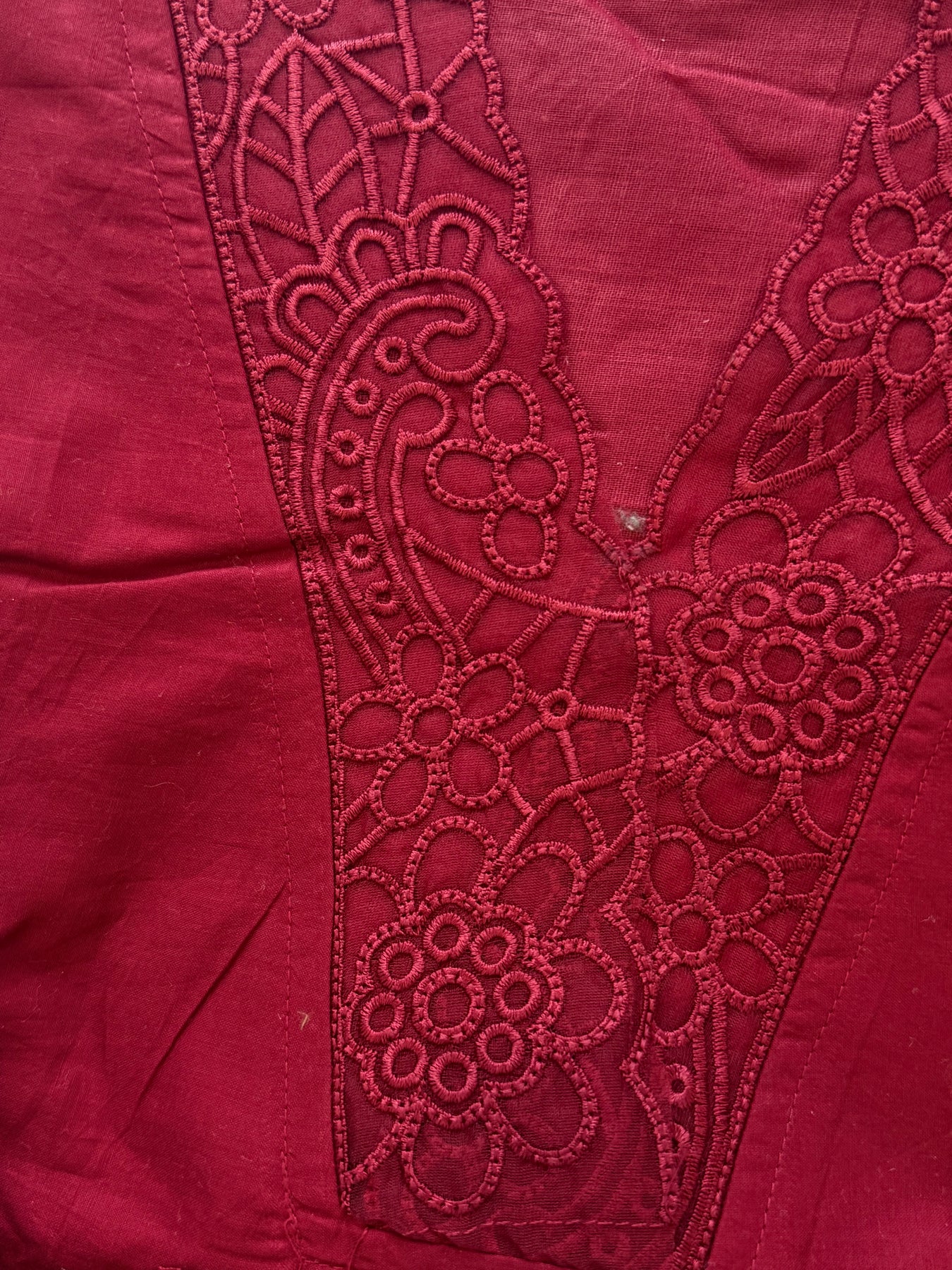 Top satin with heavy embroidery on front and sleeves……imported lace on daman.....pakistani style neck......Stitched with lining.....length 38 Inches…