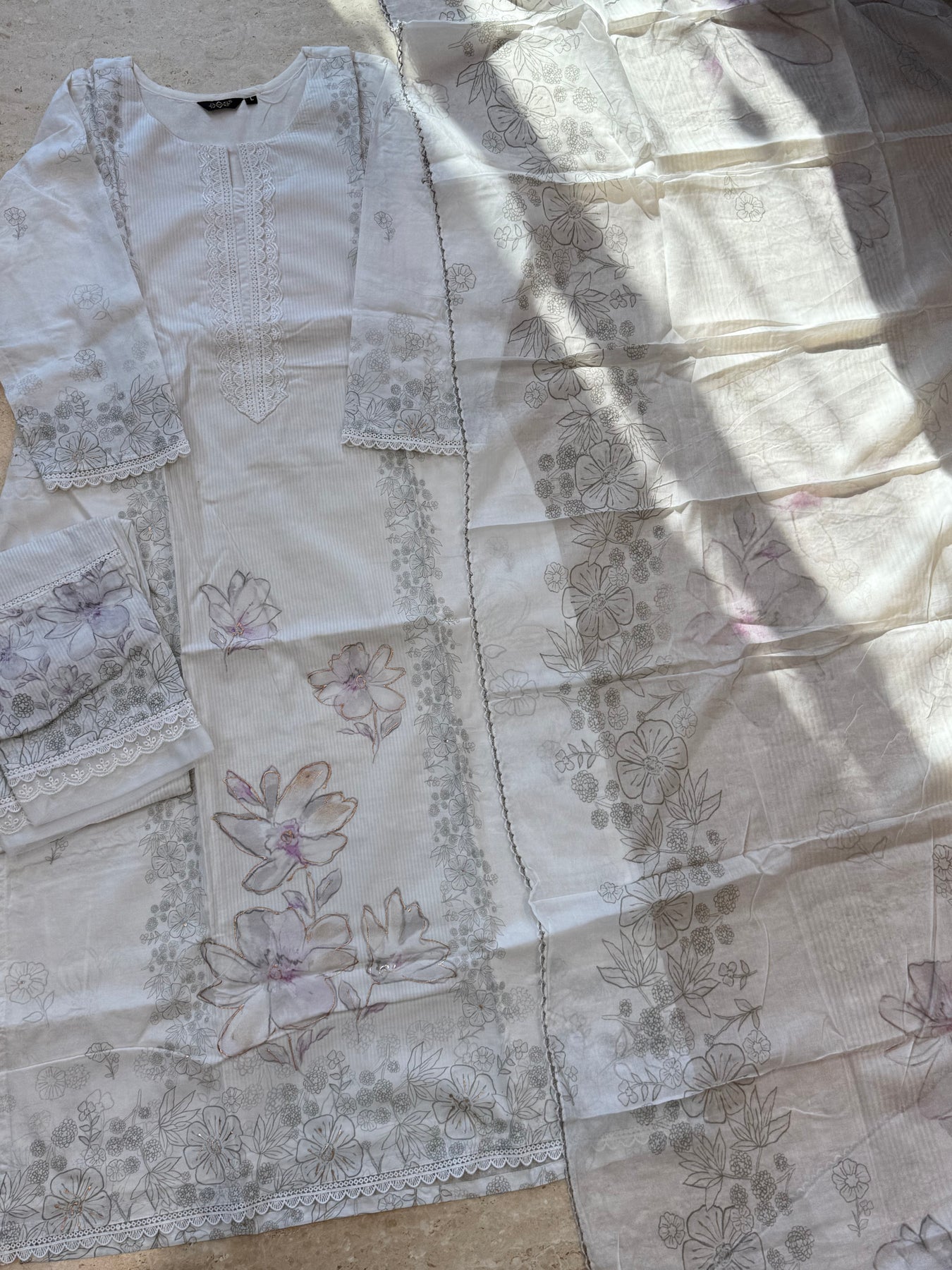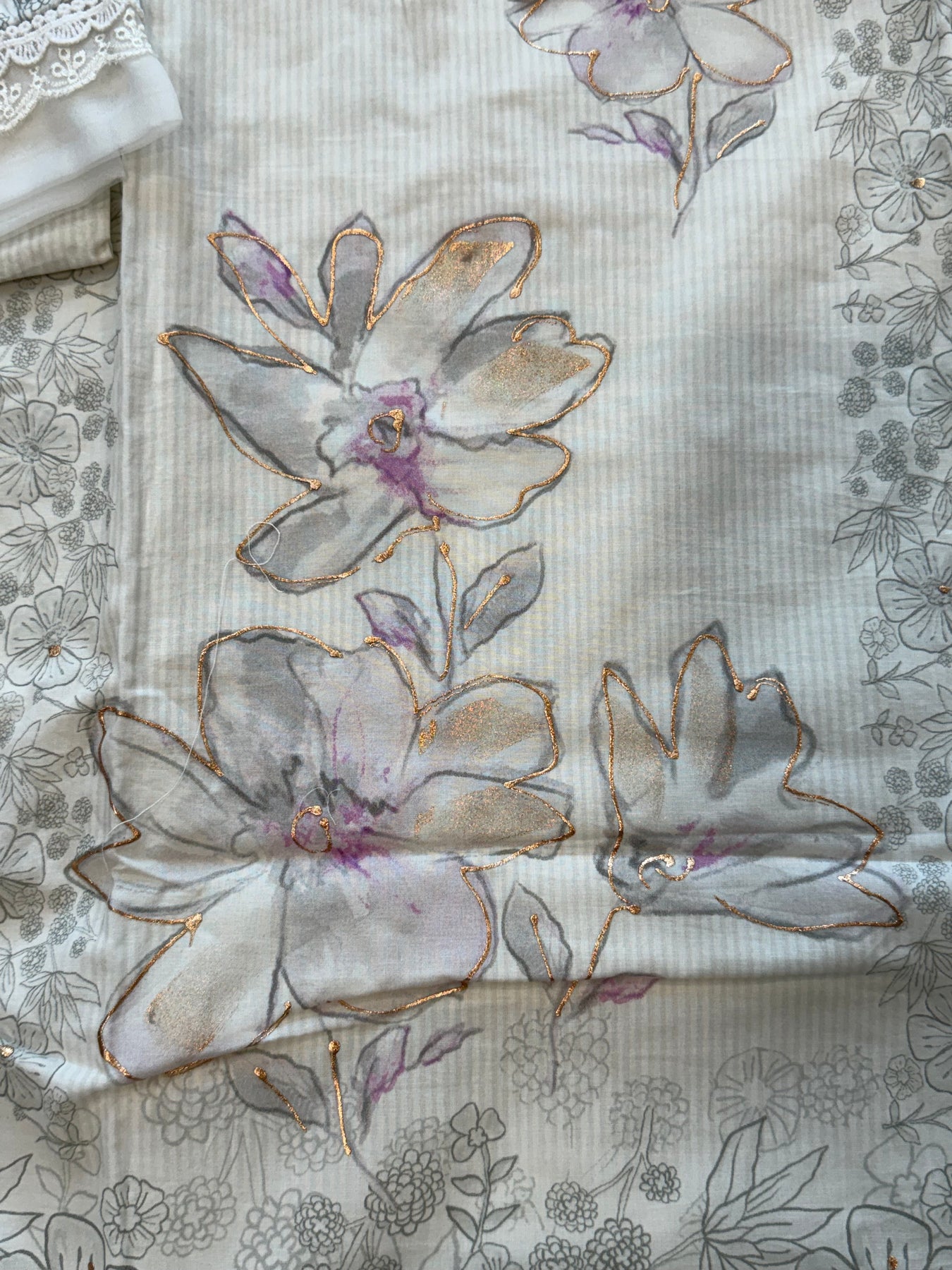 Soft pure cotton dupatta printed with qureshiya lace 2.25 meter full width