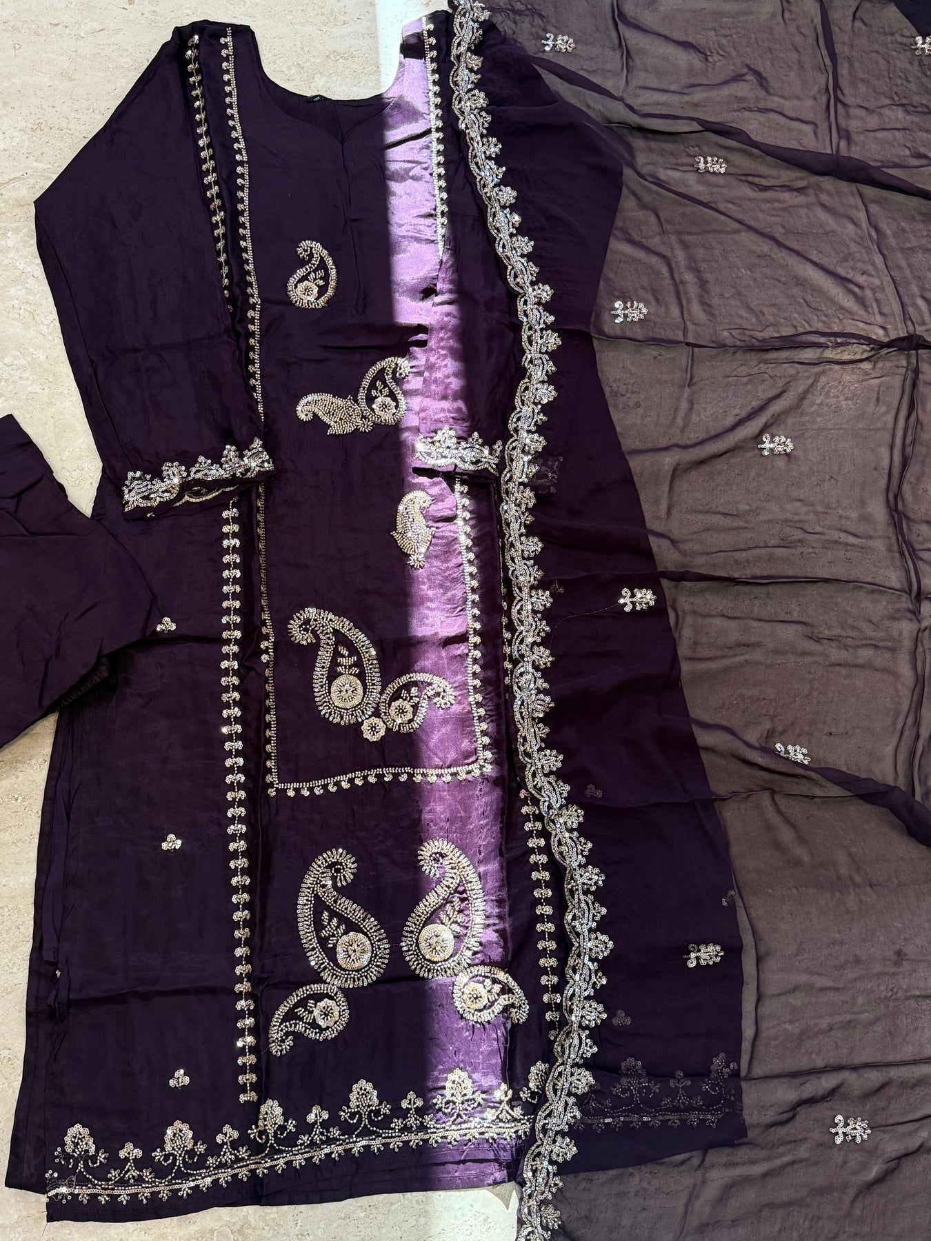 Dupatta chinon silk with heavy handwork ... length 2.25 meter