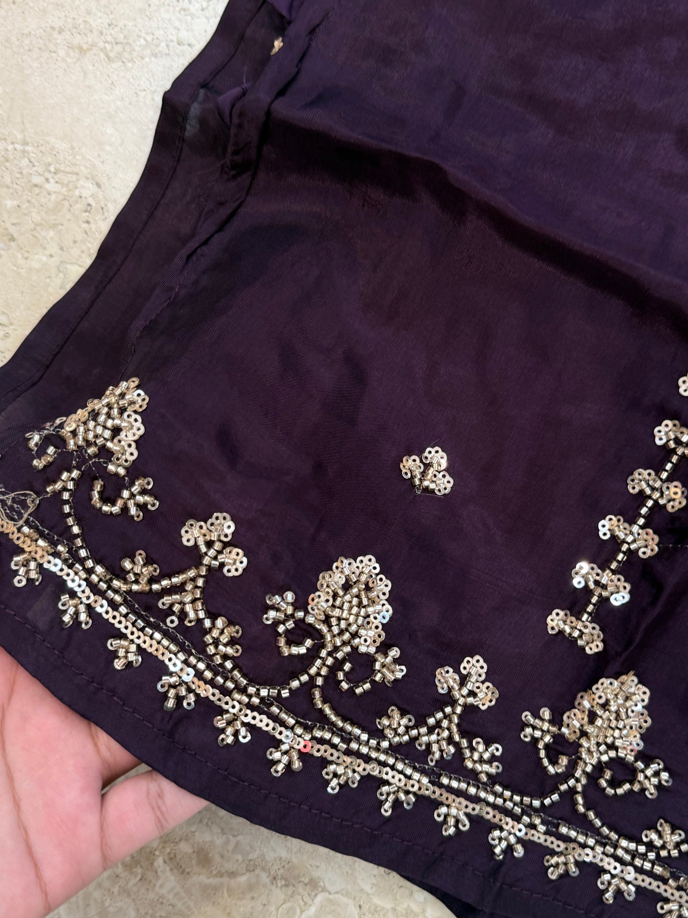 Top Upada silk designer stitched with beautiful handwork with beads and sequence embroidery.....with attached lining….48 length