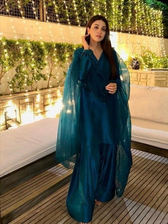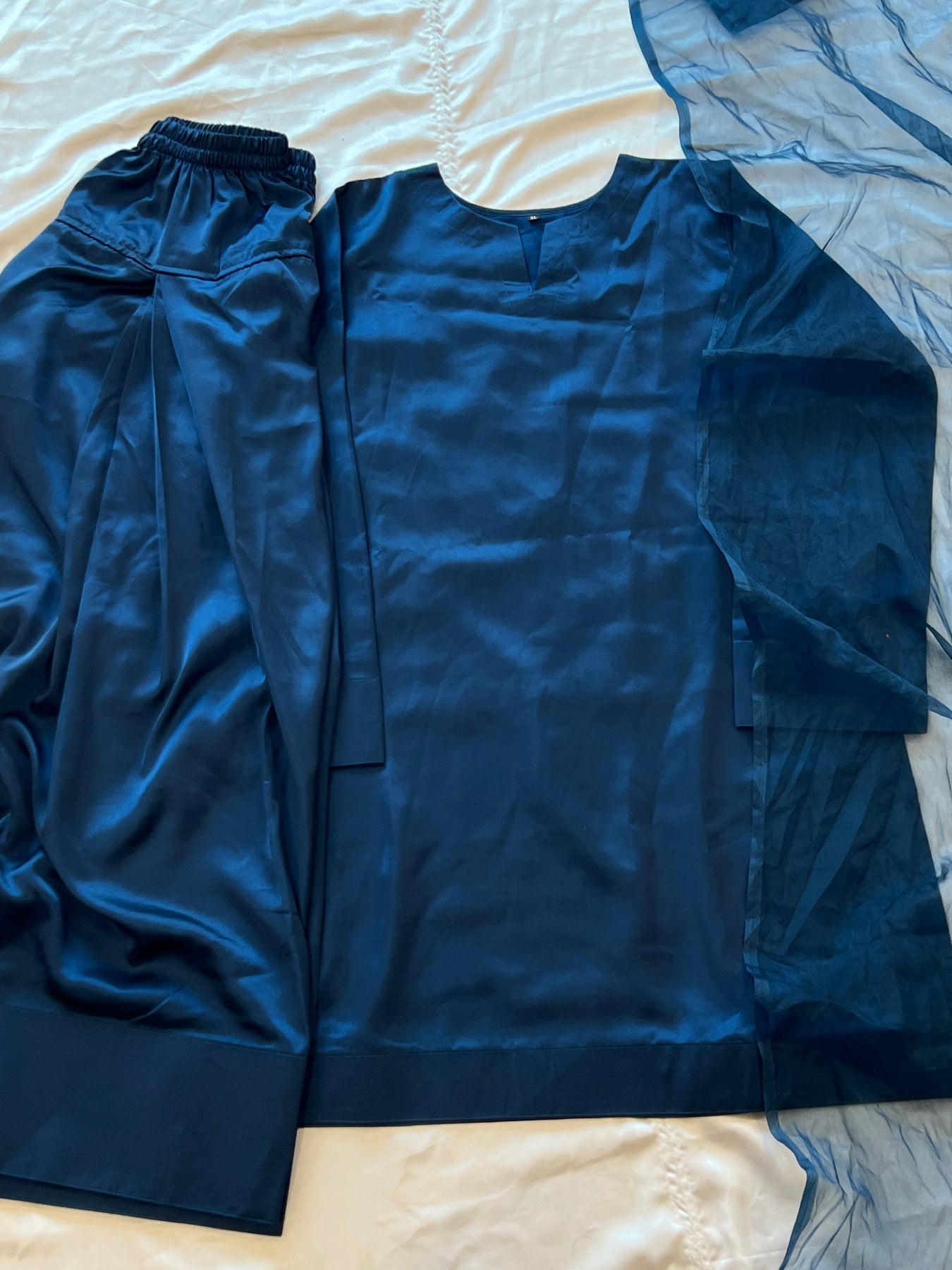 Elevate your wardrobe with our exquisite Farshi Shalwar collection, crafted from premium quality pure satin material with lining for a flawless drape. This elegant ensemble is designed with meticulous attention to detail, making it perfect for formal gatherings, festive occasions, and celebrations.