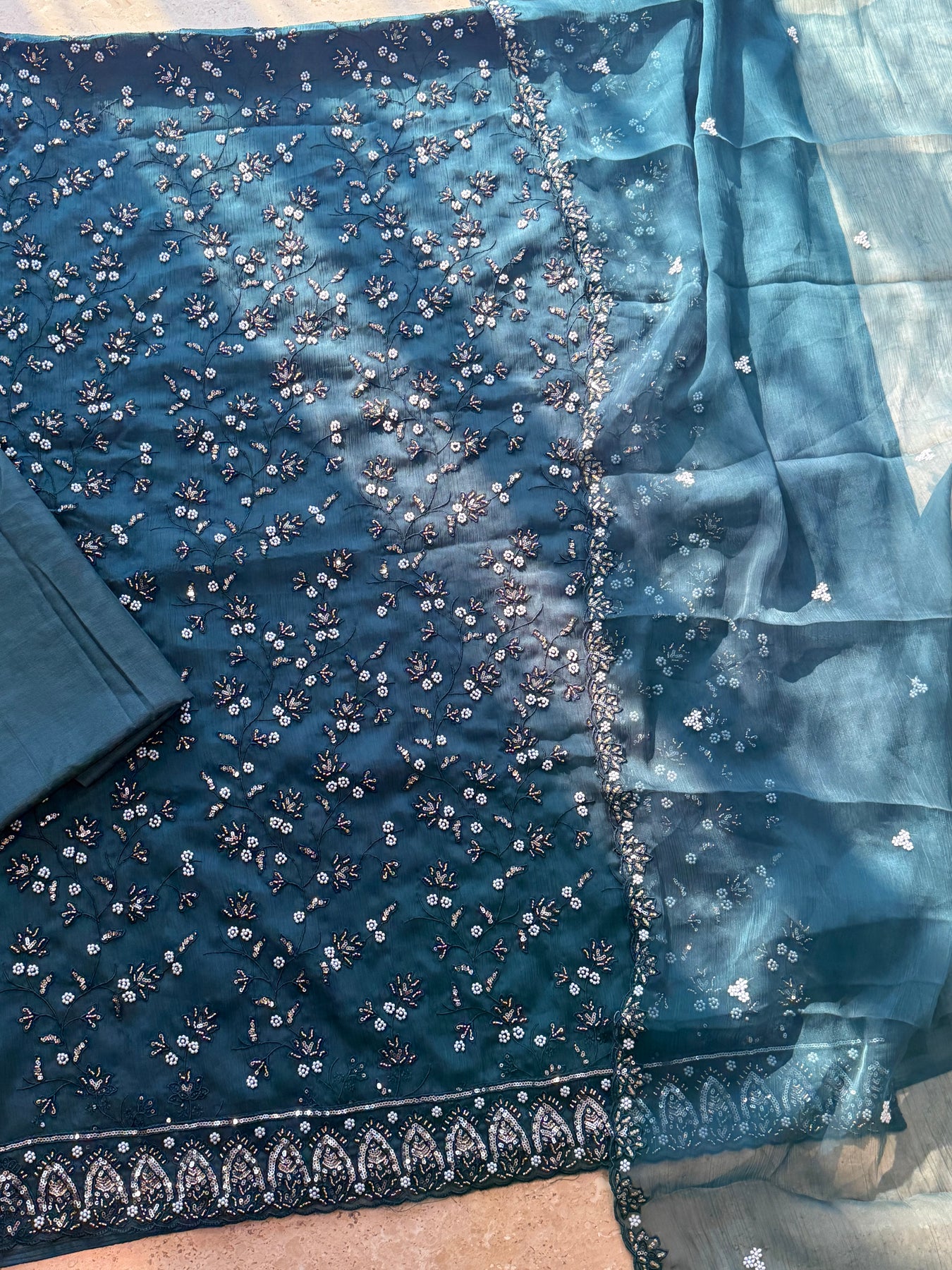 Organza dupatta with pearl work 2.25 meter