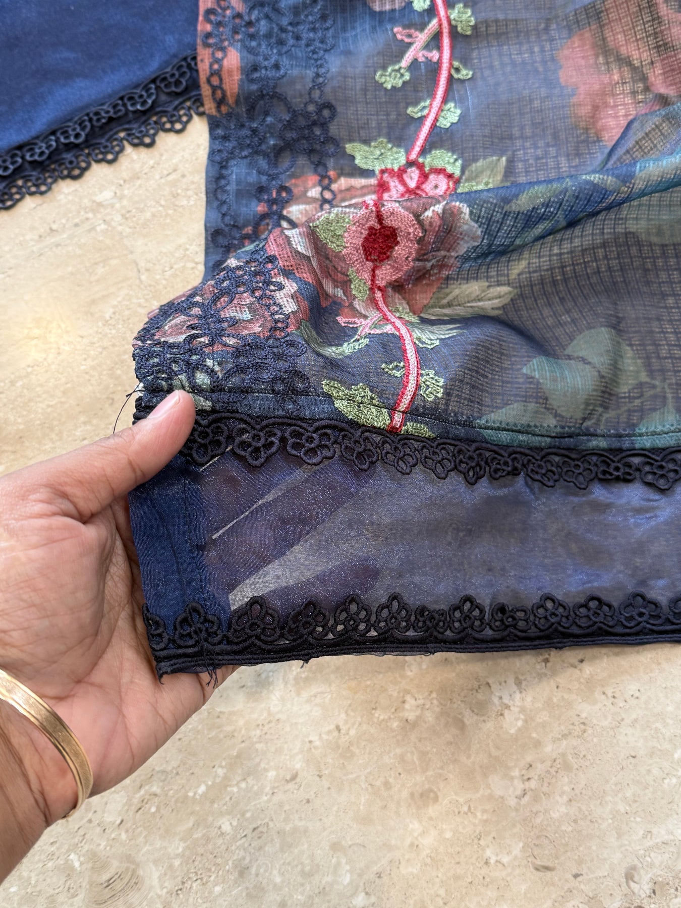 Kota checks Embroidery Dupatta with 2 side embroidery boarder and extra laces and organza..2.25 meter full width