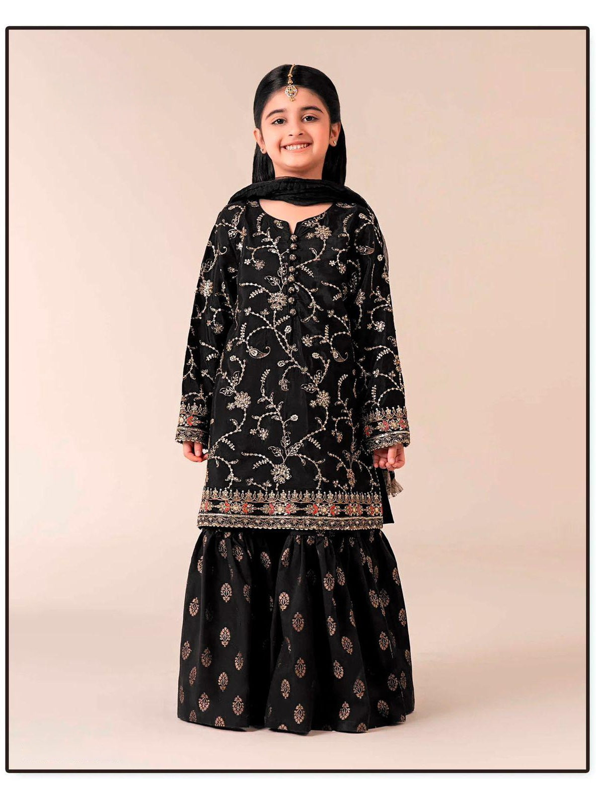 Beautiful Pakistani girls’ suit in elegant top and garara style, designed for ages 2 to 12. Crafted for comfort and festive charm, perfect for special occasions.