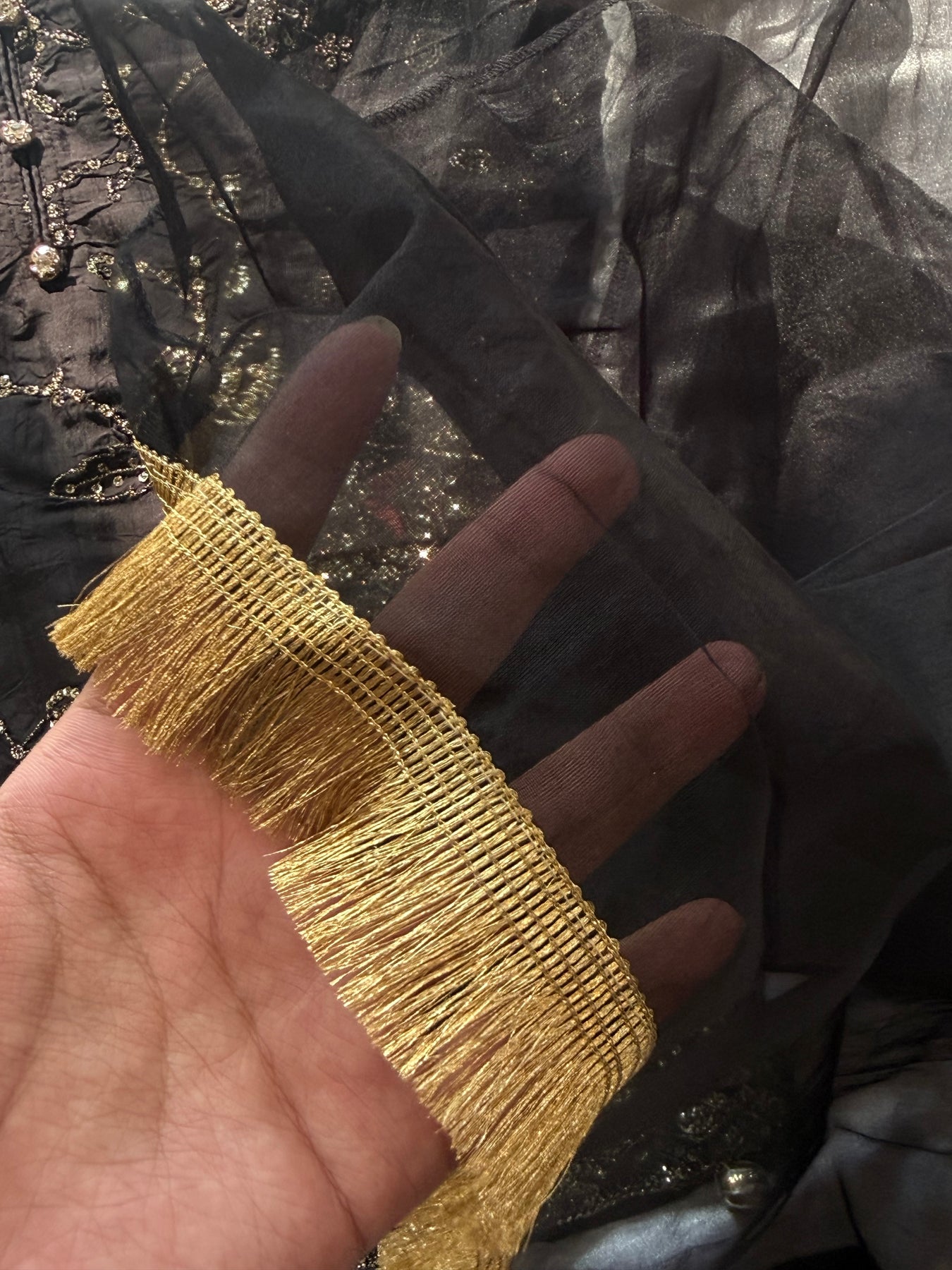 Top Cotton silk material  embroidery and lace boarder with hangings …..Pakistani style heavy neck