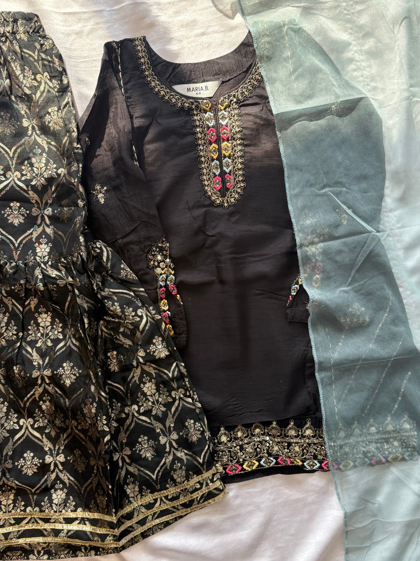 Beautiful Pakistani girls’ suit in elegant top Garara style, designed for ages 2 to 12. Crafted for comfort and festive charm, perfect for special occasions.