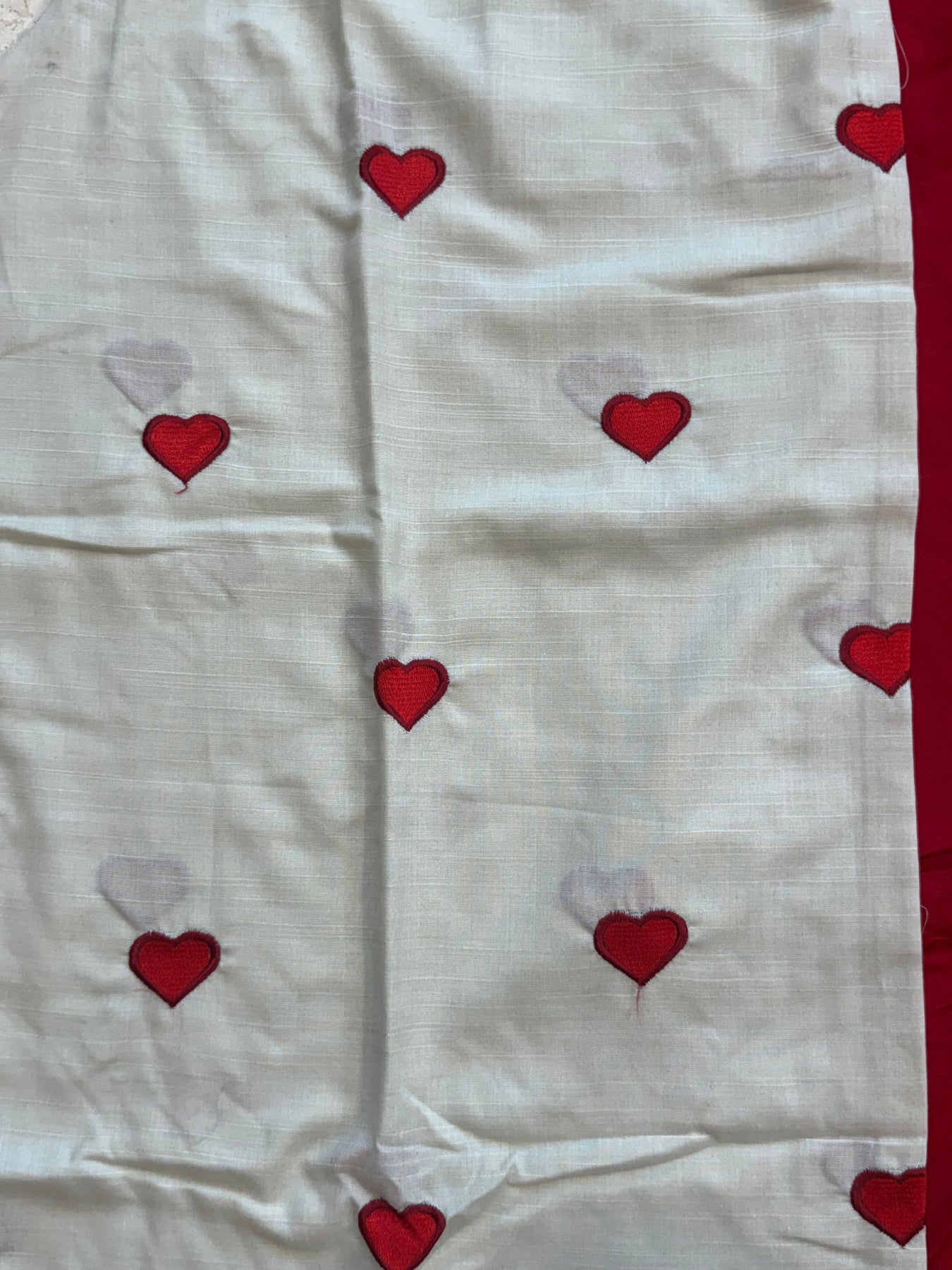 Linen bottom with heart shape embroidery on it...Length 37Inches