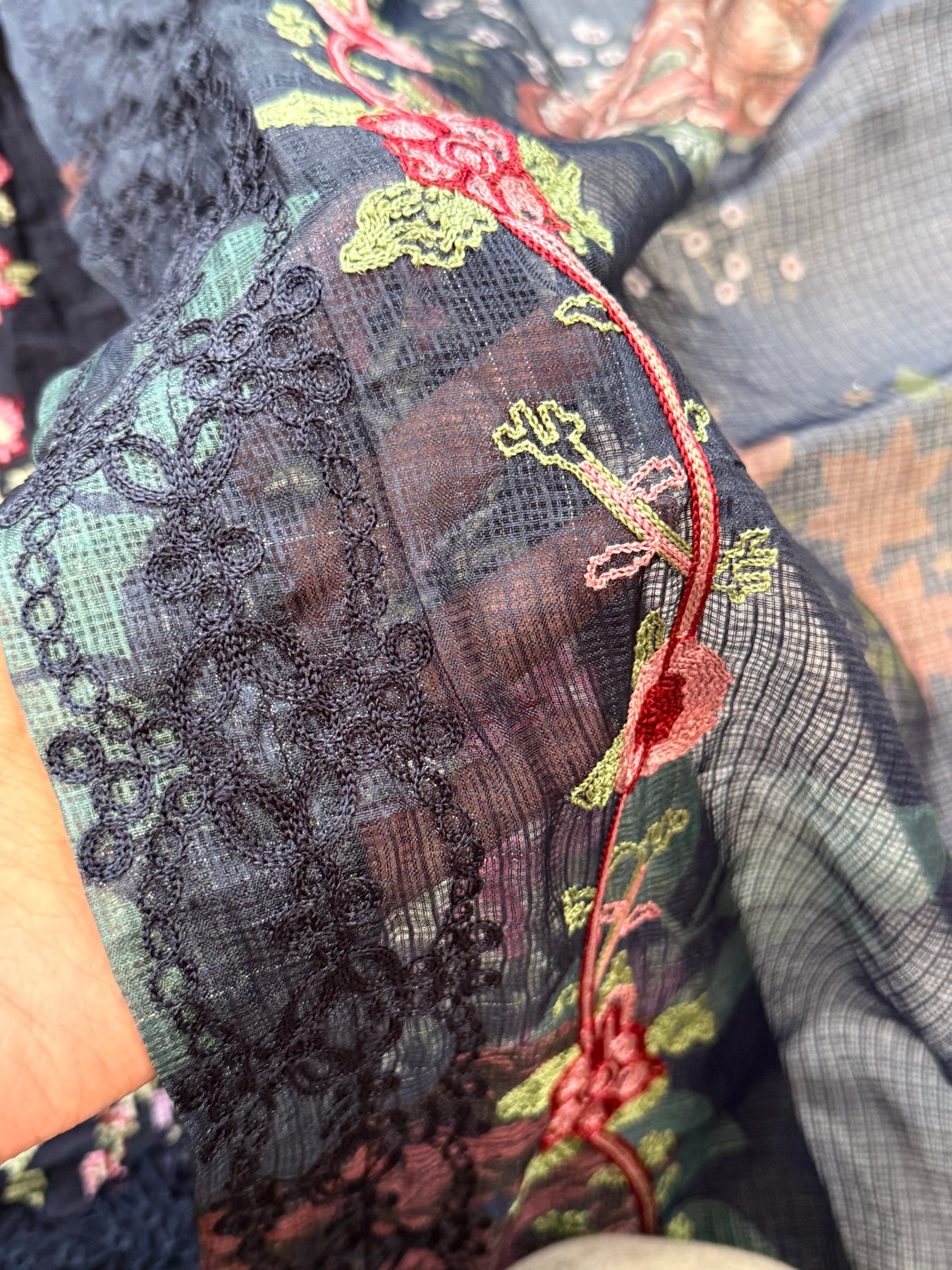 Kota checks Embroidery Dupatta with 2 side embroidery boarder and extra laces and organza..2.25 meter full width