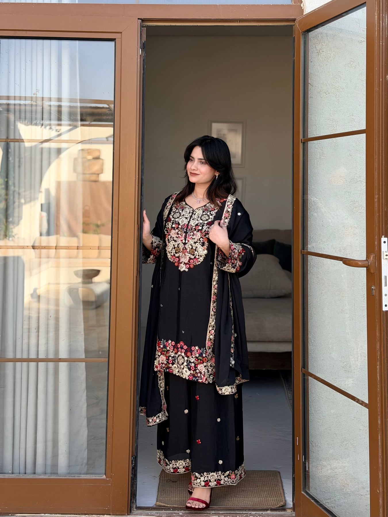 Stitched plazo with lining and embroidery length 40 inches