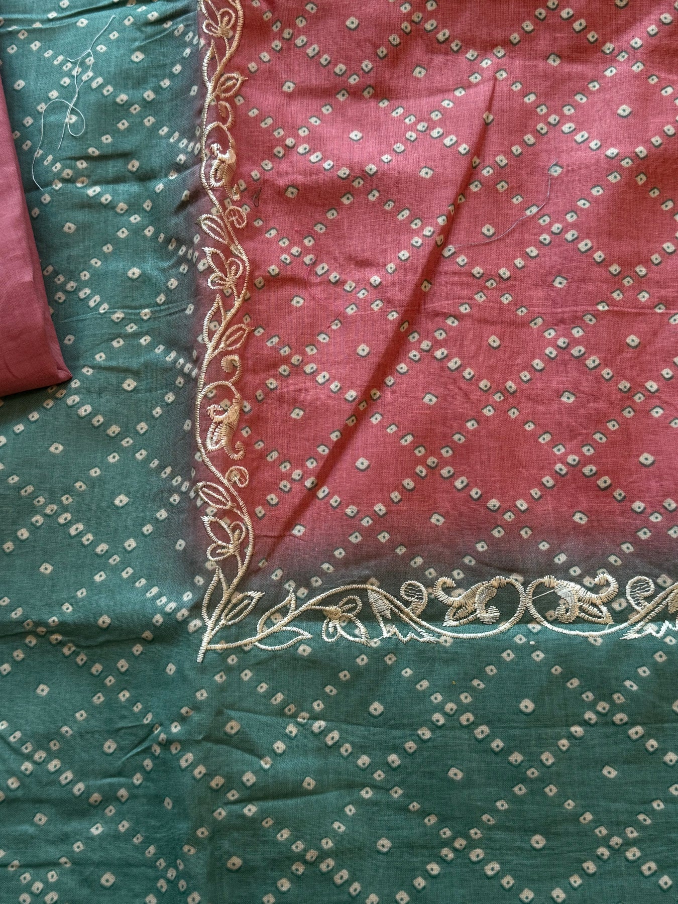 Top cotton Mill printed... beautiful embroidery panel on front …stitched with lining ...Top length 42 Inches