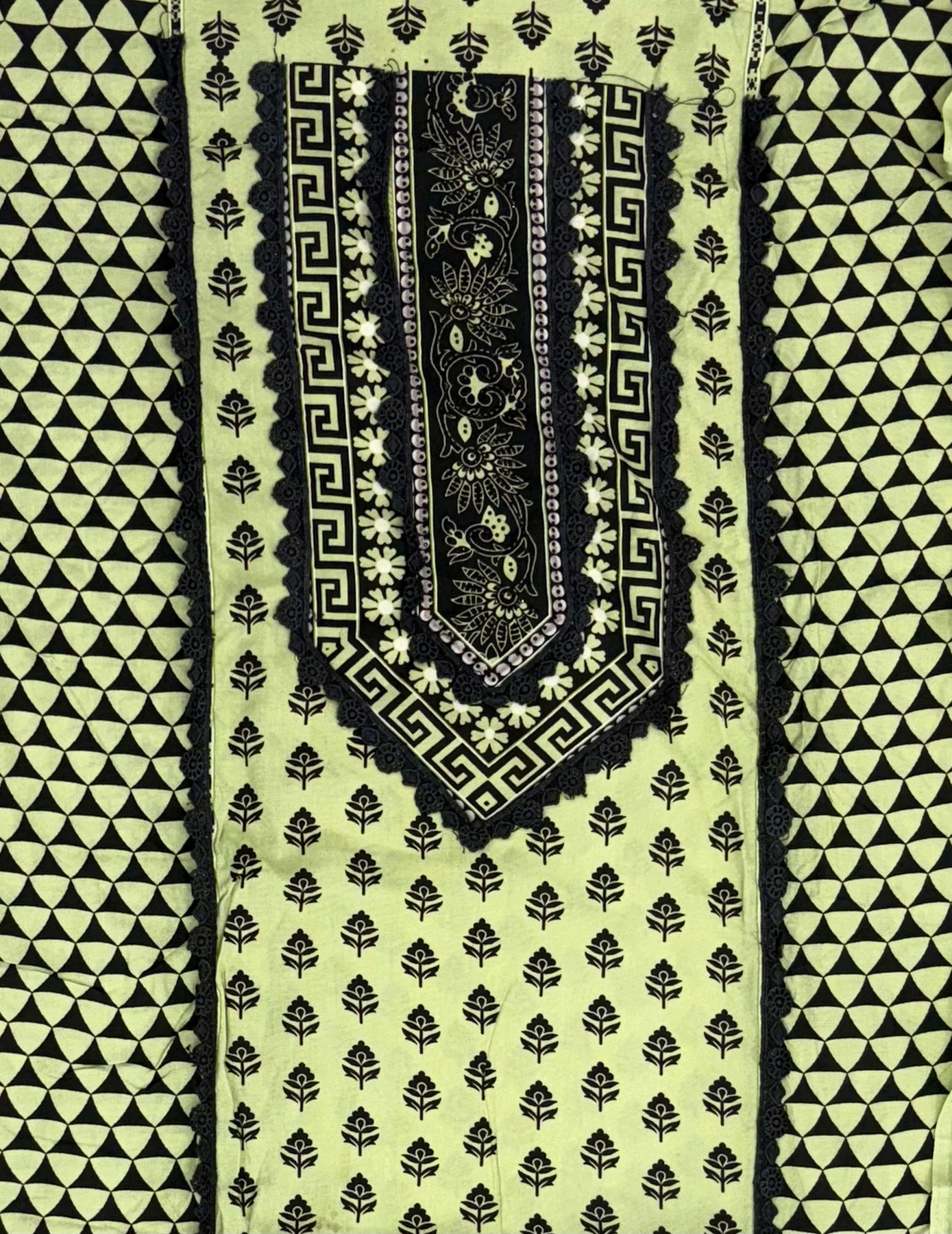 Top Lawn cotton Printed..... Neck embroidery  ...Pakistani style neck made with lace...... extra lace detailing on front ,sleeves and daman....