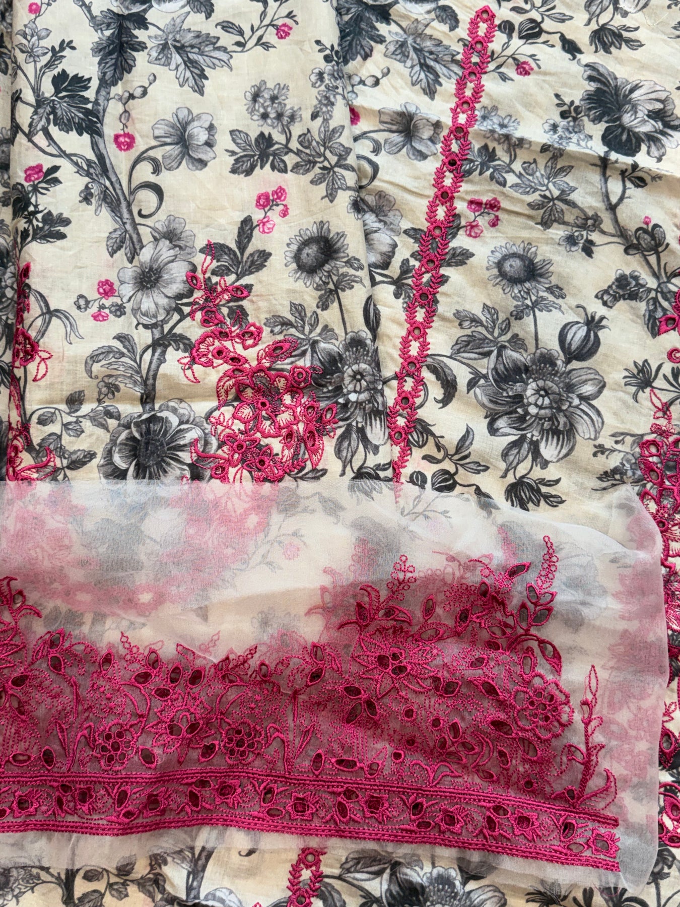 Dupatta soft pure shiffon Digital print with 2 side embroidery . 2.25 meter