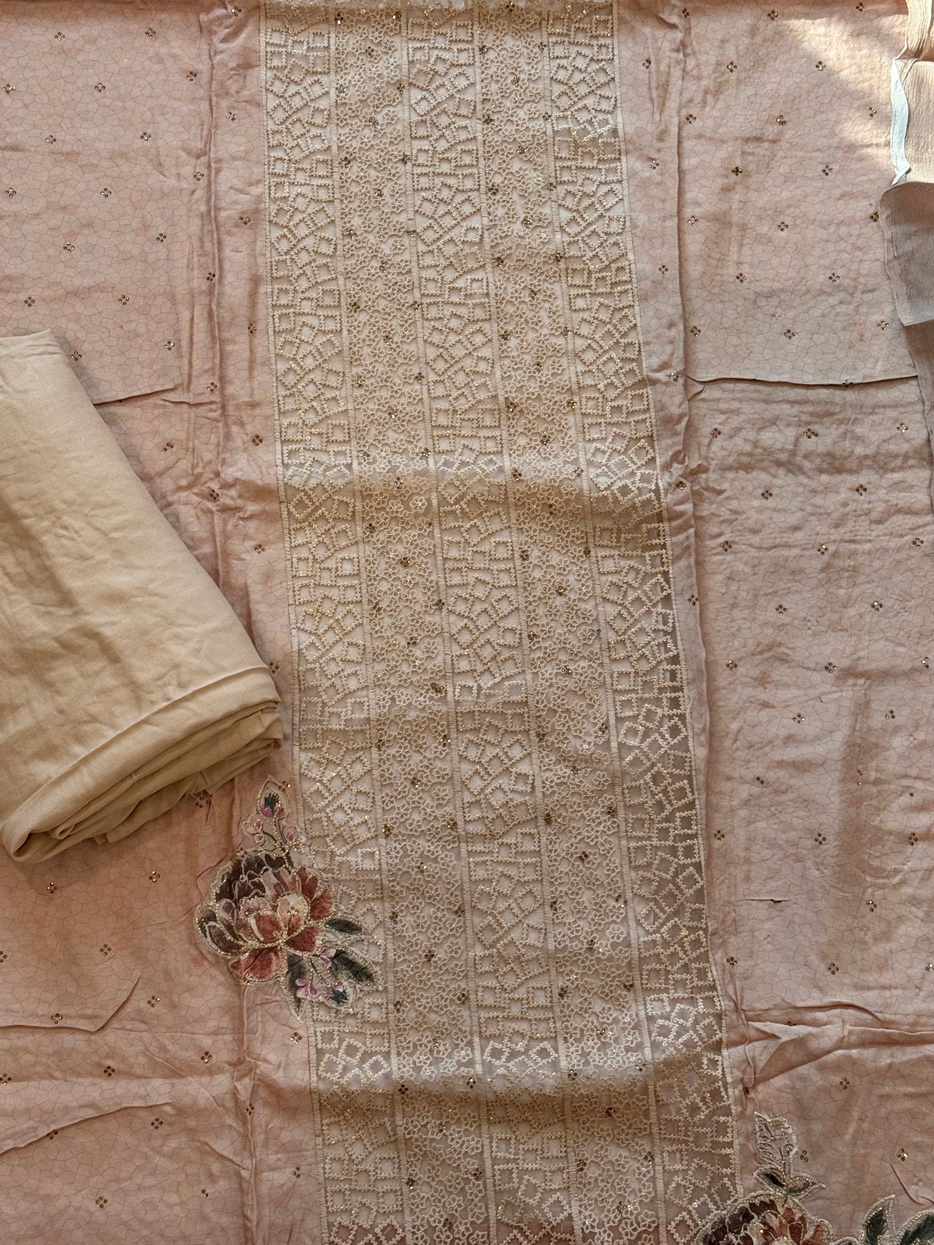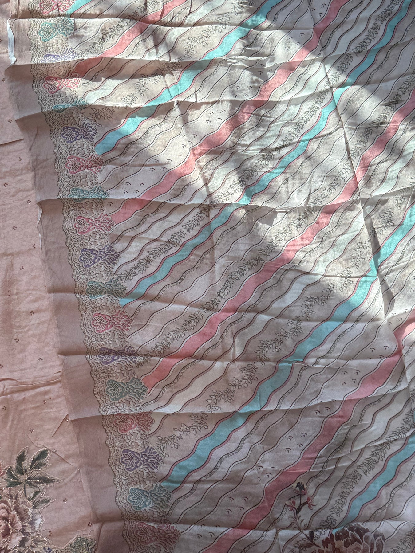 Top pure Crepe Digital printed.. Heavy embroidery panel and velvet patch with beautiful imported lace on front ...length 46 Inch..Bust 56 can be stitched....extra material for sleeves