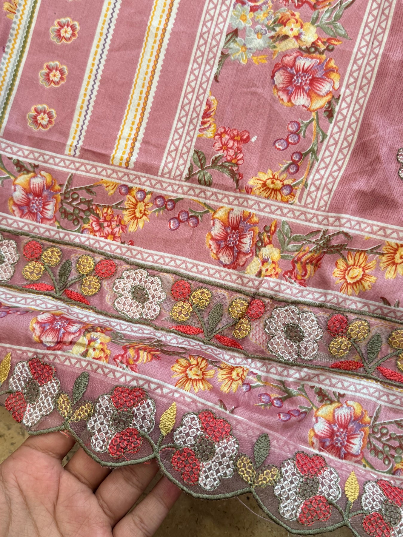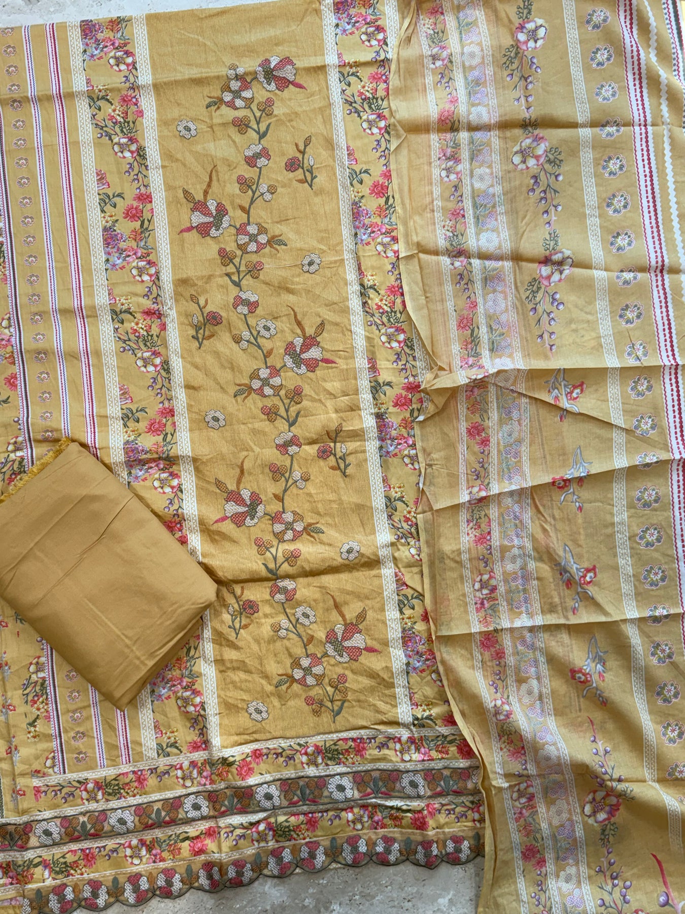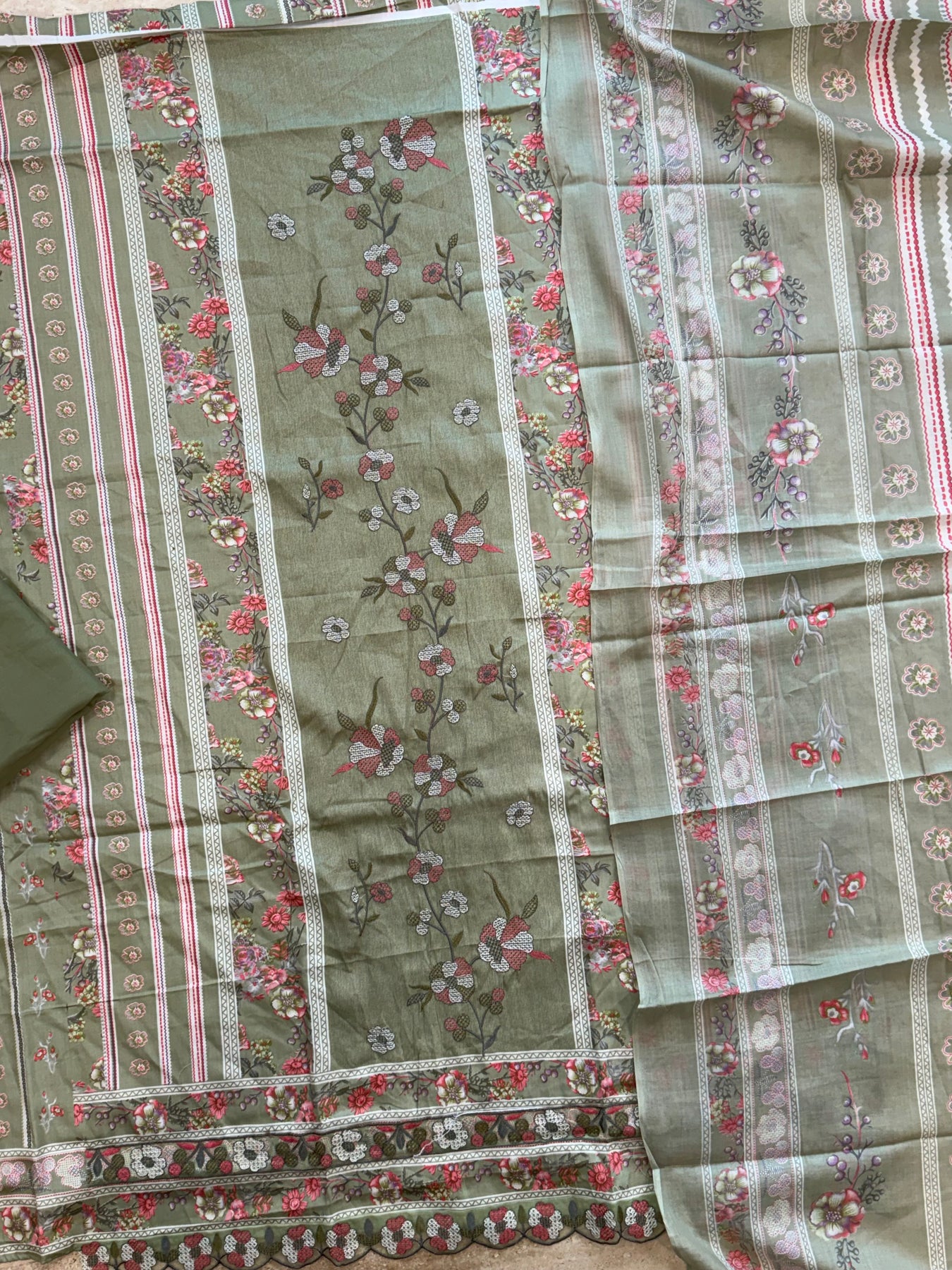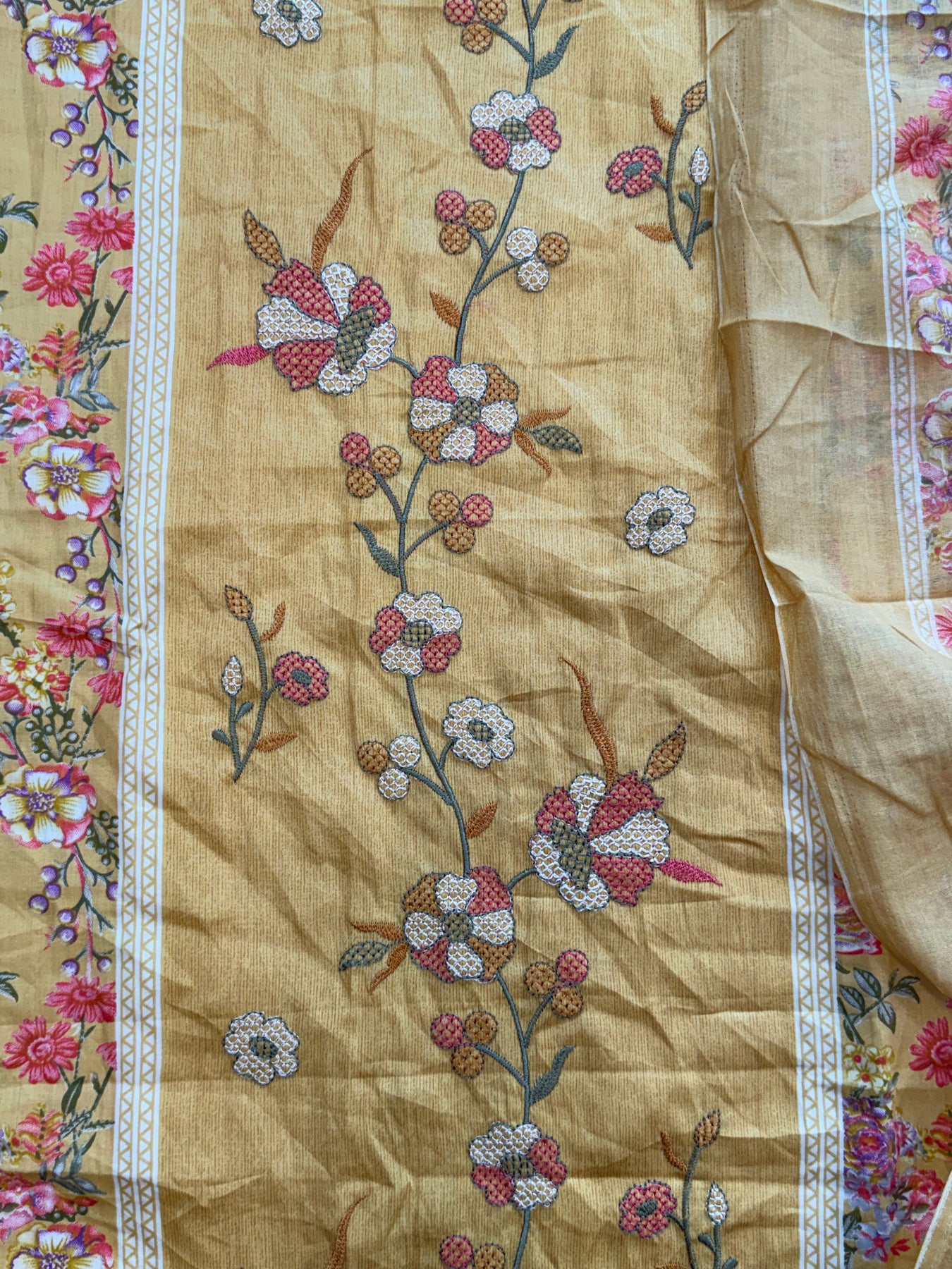 Top Lawn Cotton Mill Printed... beautiful embroidery panel on front ..top.length 46 Inch..Bust 58 can be stitched