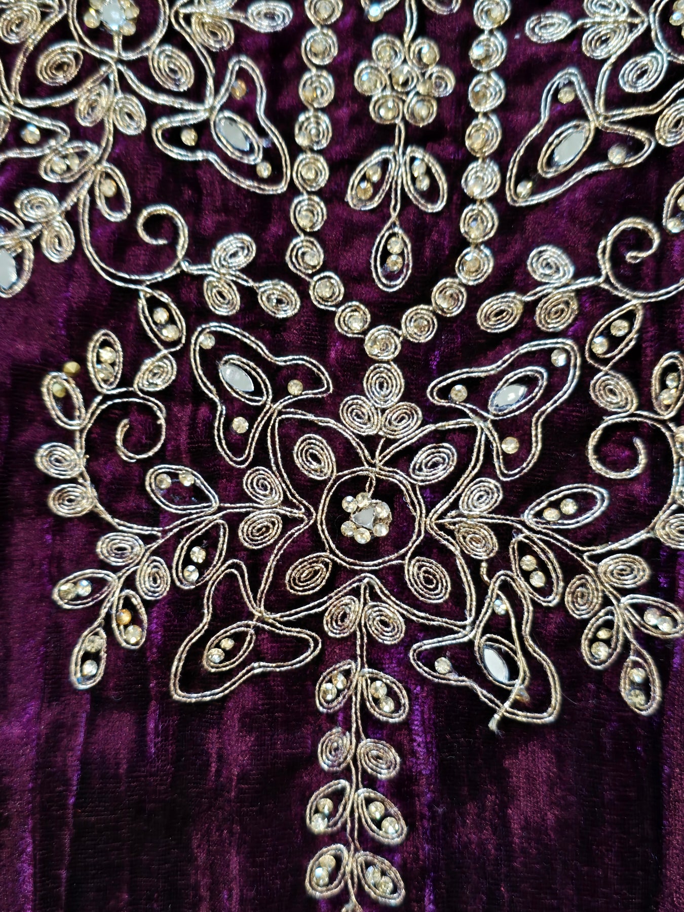 Top premium crush velvet with kundan and golden thread work on neck ,daman and sleeves...plain velvet back....Length 49 inches. bust 56 inches...