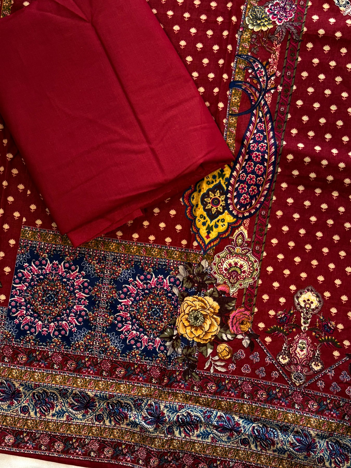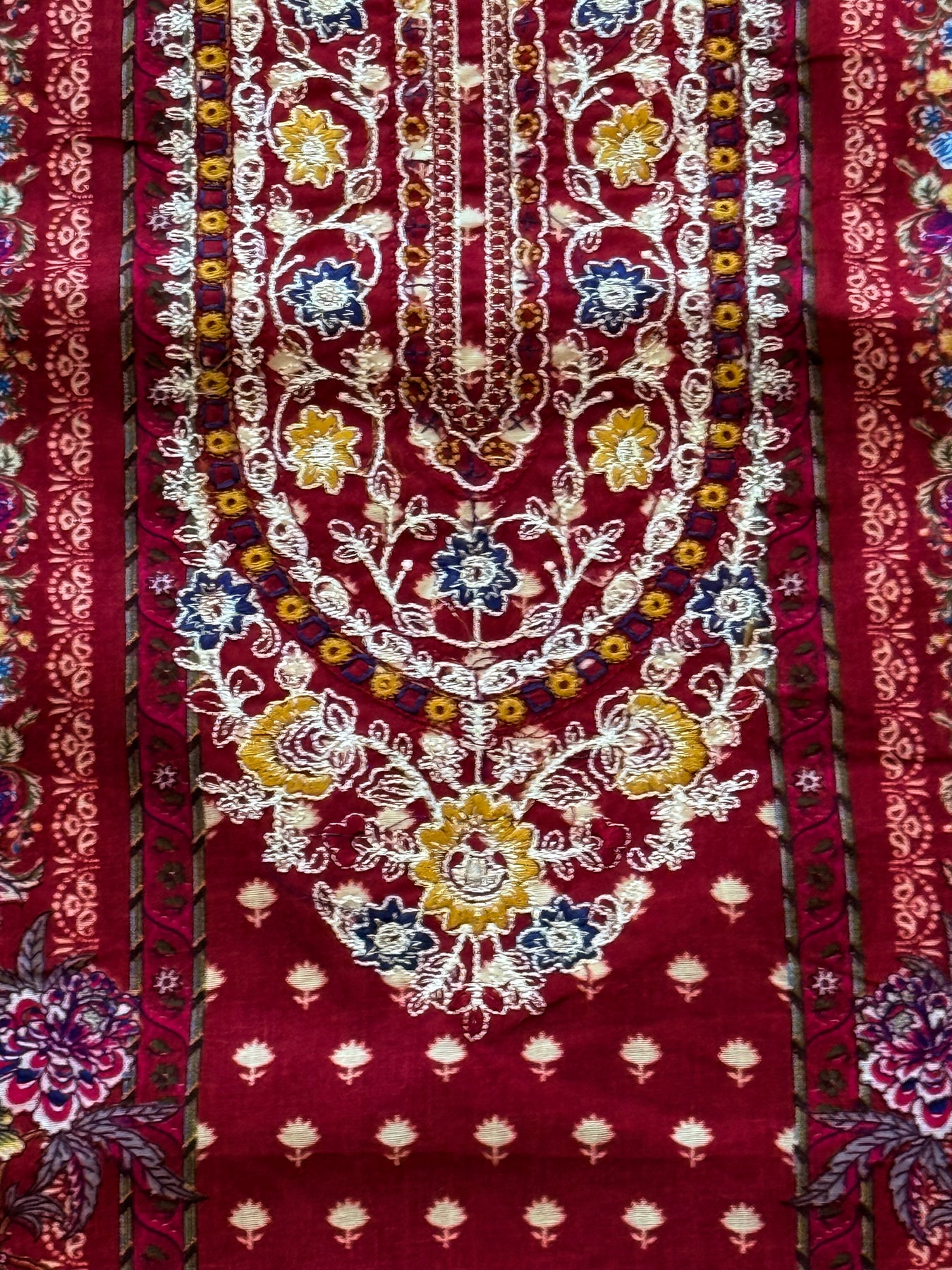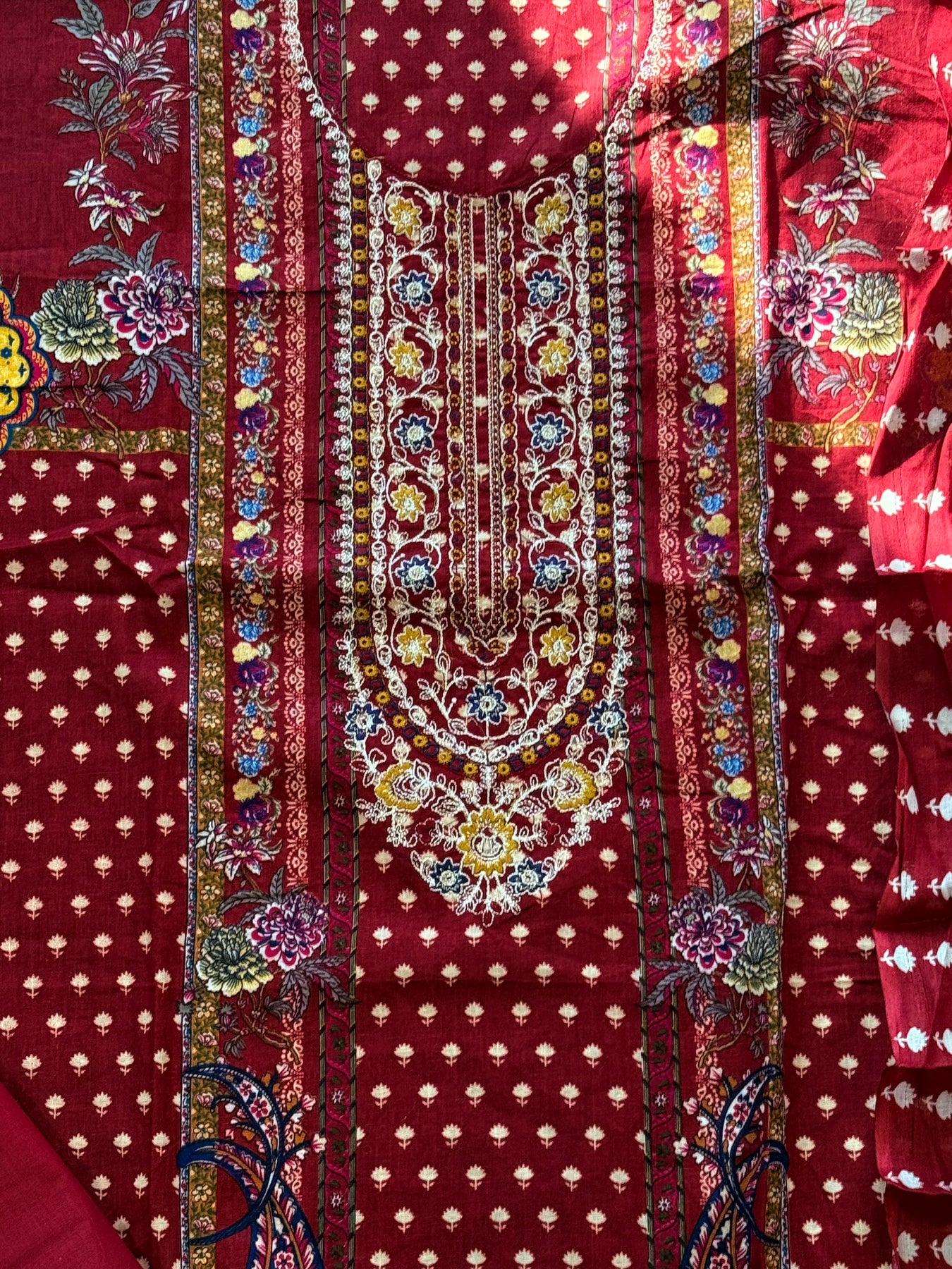 Top Lawn Cotton Digital Printed With Neck embroidery