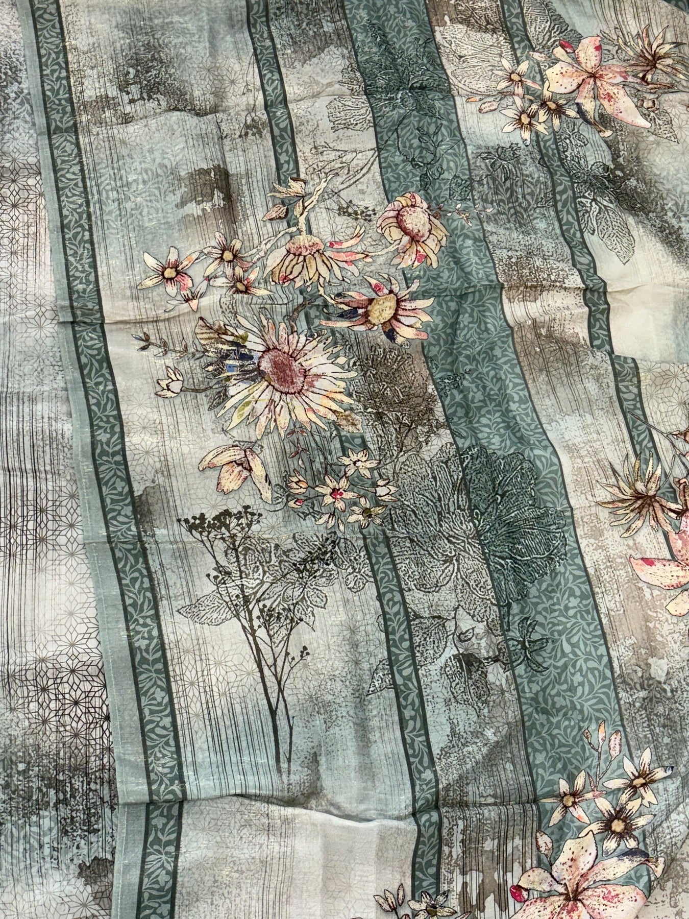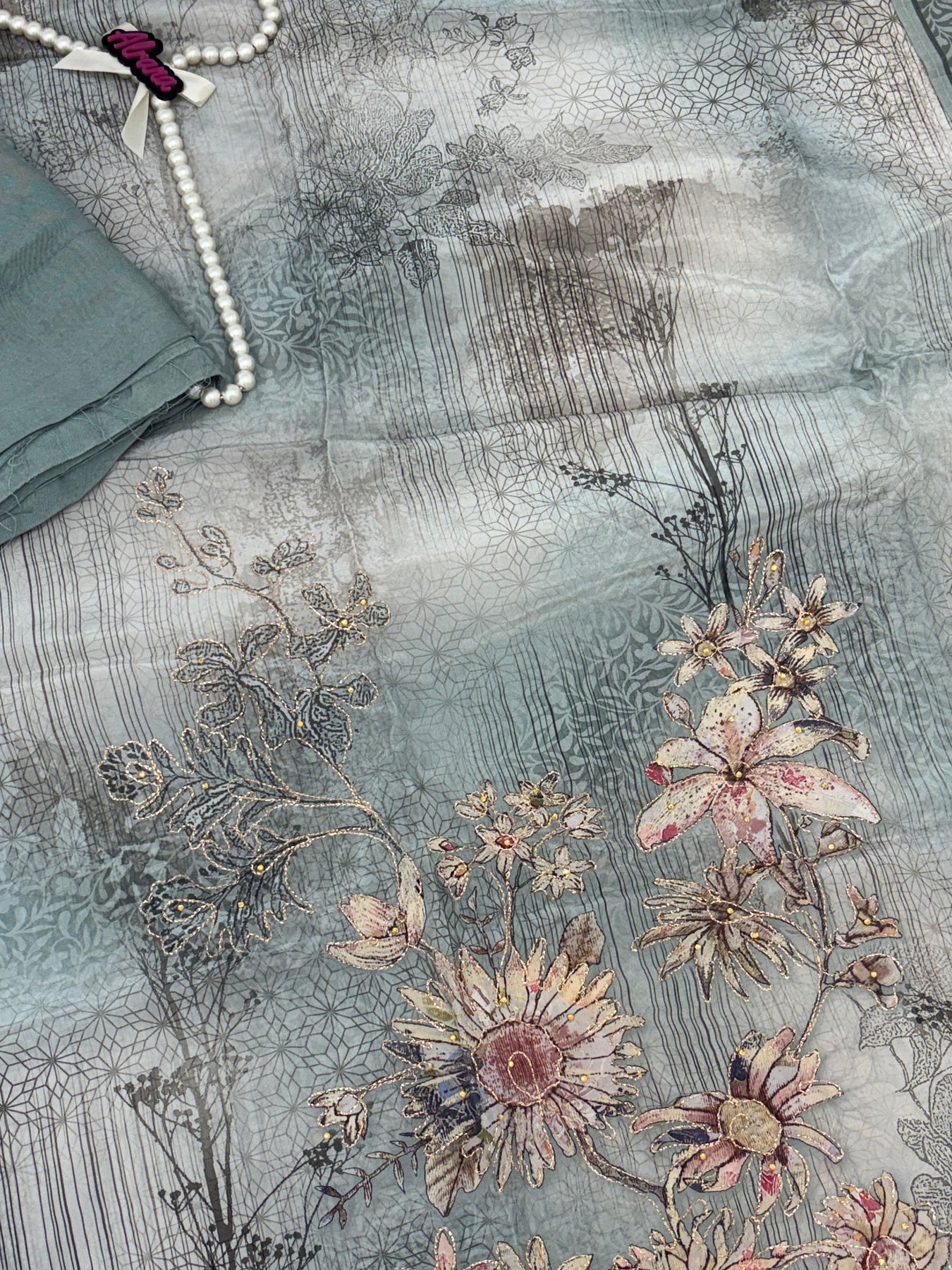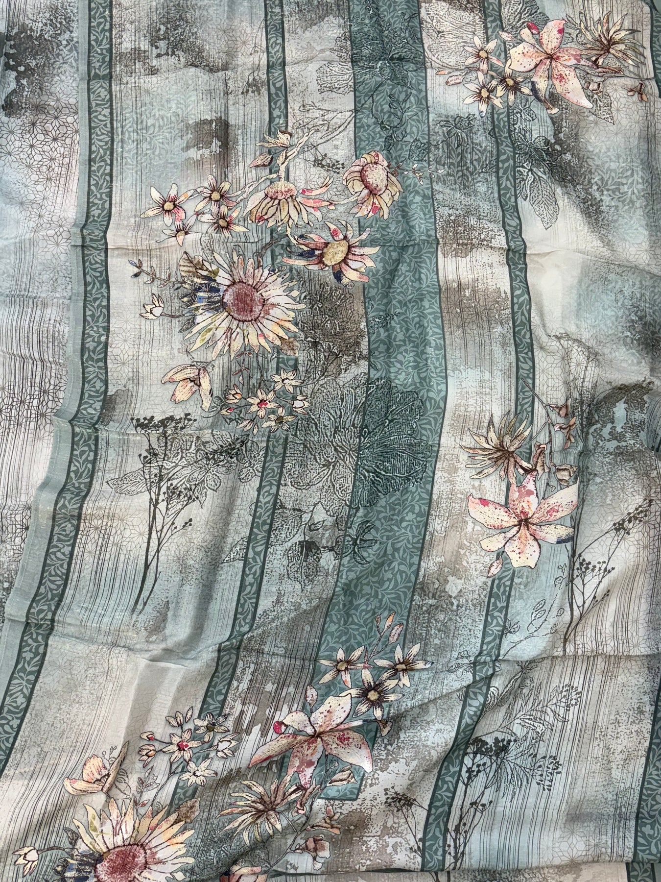 Top Pure Crepe unstitched with beautiful digital print with beautiful hand embroidery....Bust 58 inches can be stitched... top Length 44inches