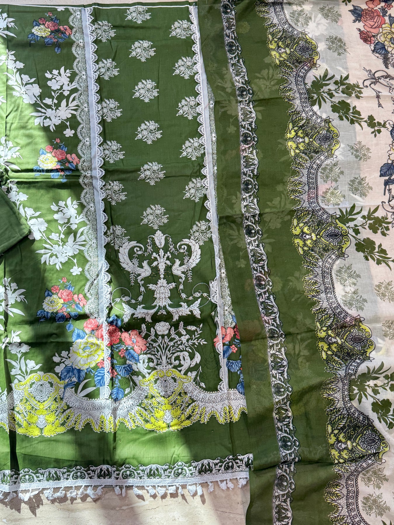Top pure Lawn Cotton digital print with beautiful lace on neck and front...bust 52 inches