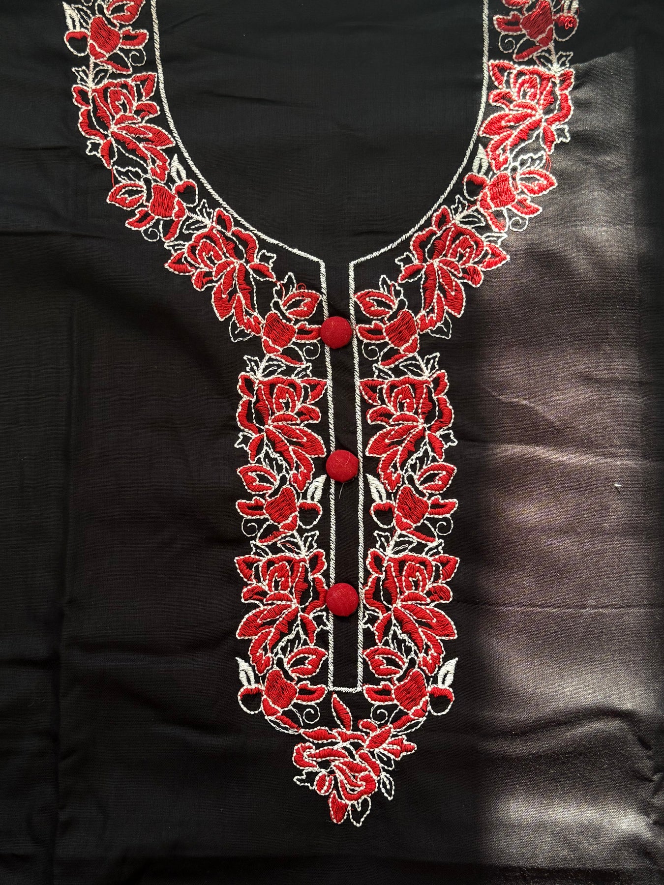 Top rayon cotton with beautiful lace on neck and cutwork floweron  front...bust 54 inches