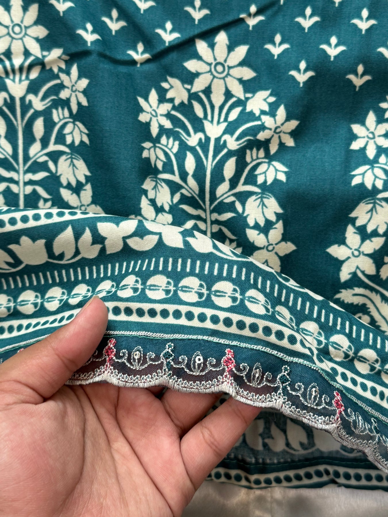 Top Lawn Cotton Mill Printed... beautiful  embroidery on front ..top.length 45 Inch..Bust 62 can be stitched