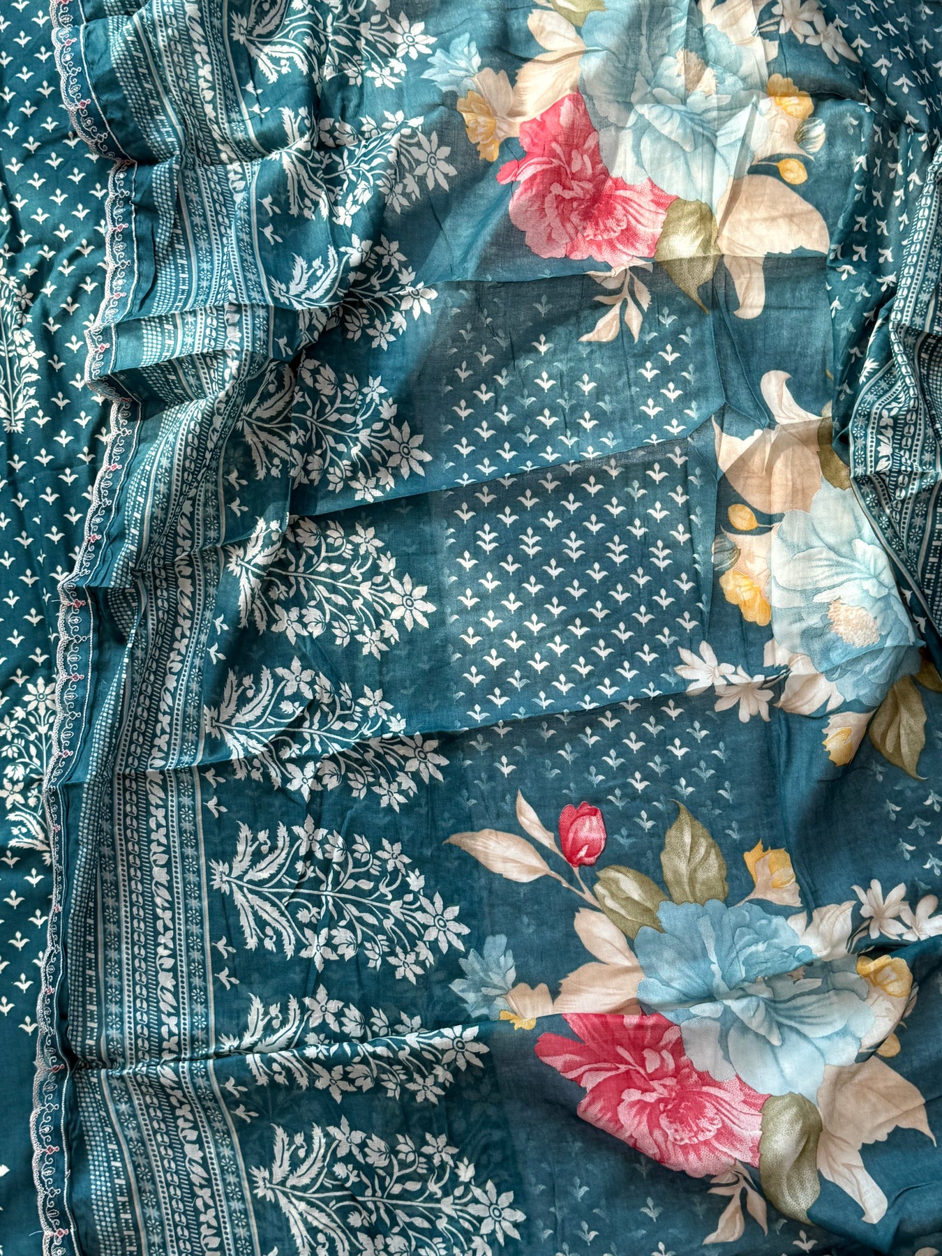 Dupatta Lawn Digital Printed with 2 side organza lace 2.25 meter