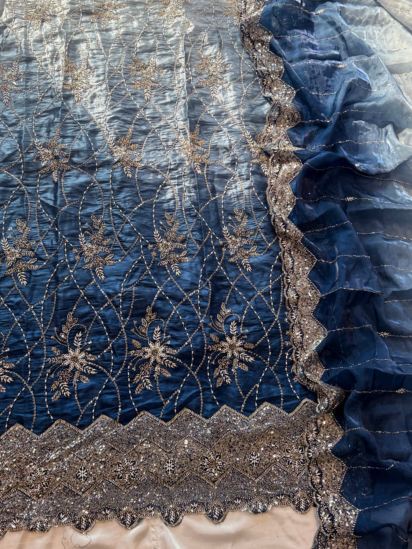 Glass Organza dupatta with heavy handwork