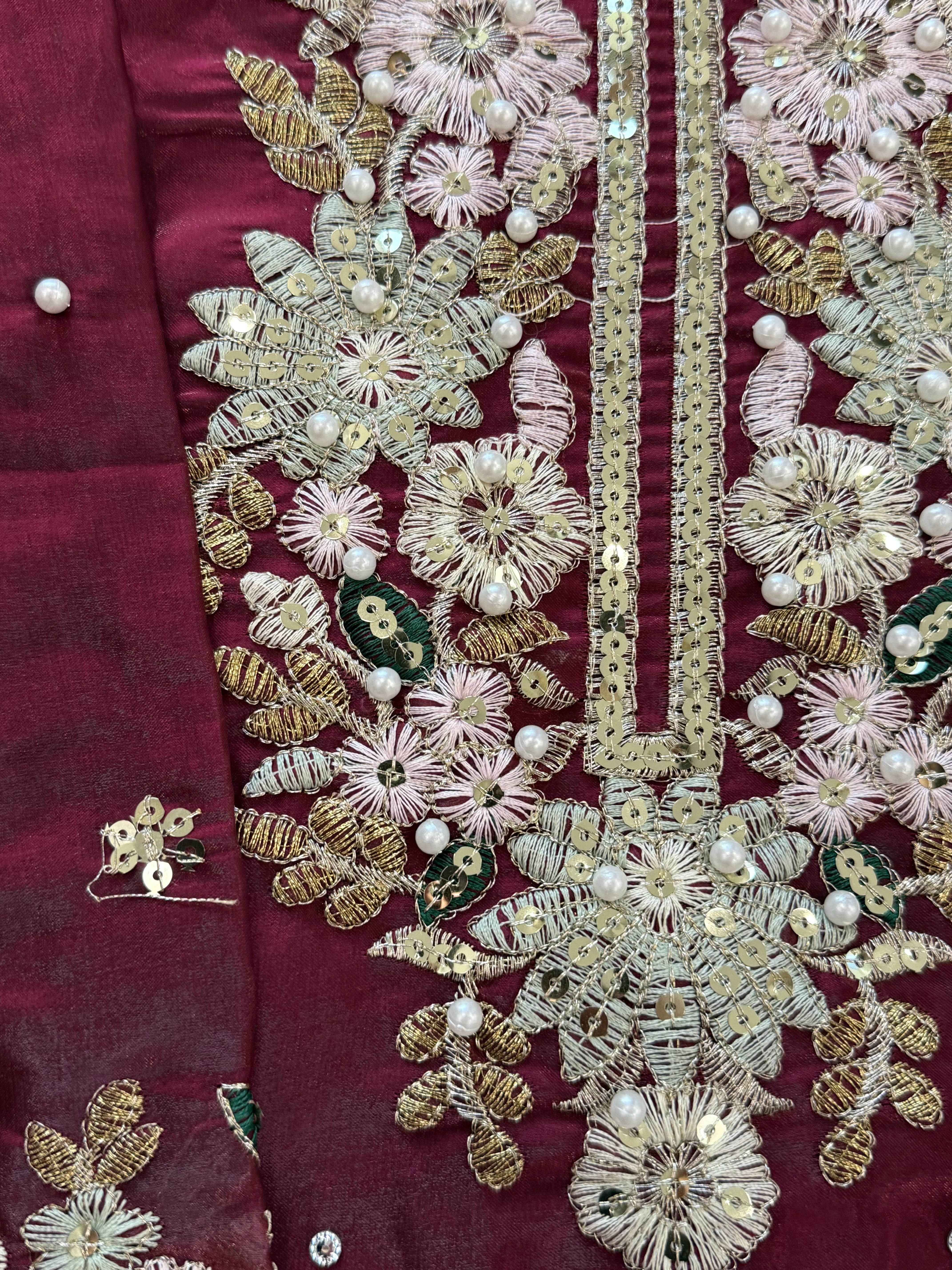 JIMMY CHOO MAROON READYMADE EMBROIDERY SUIT 2 Q