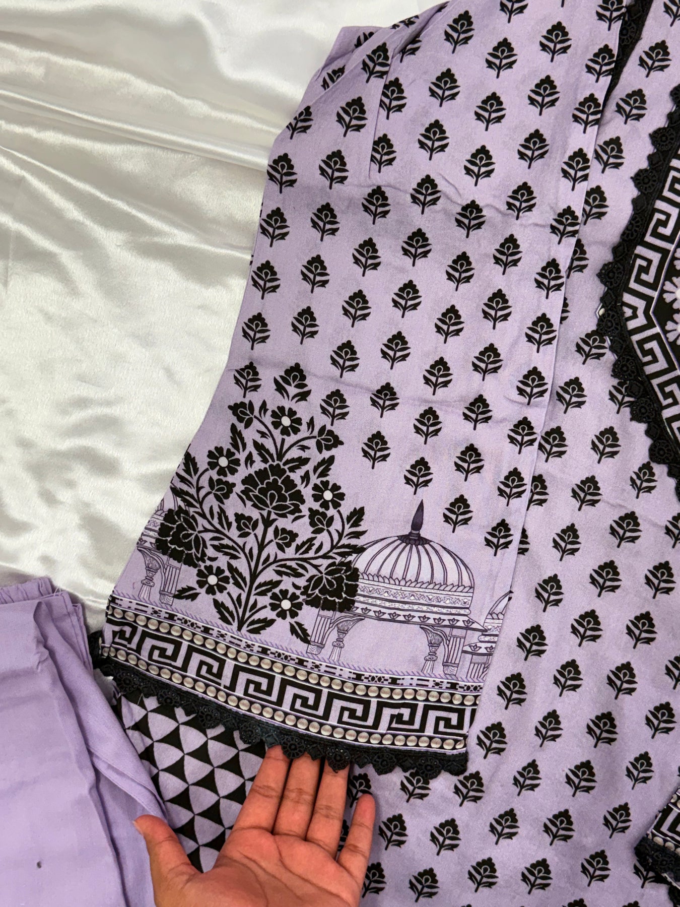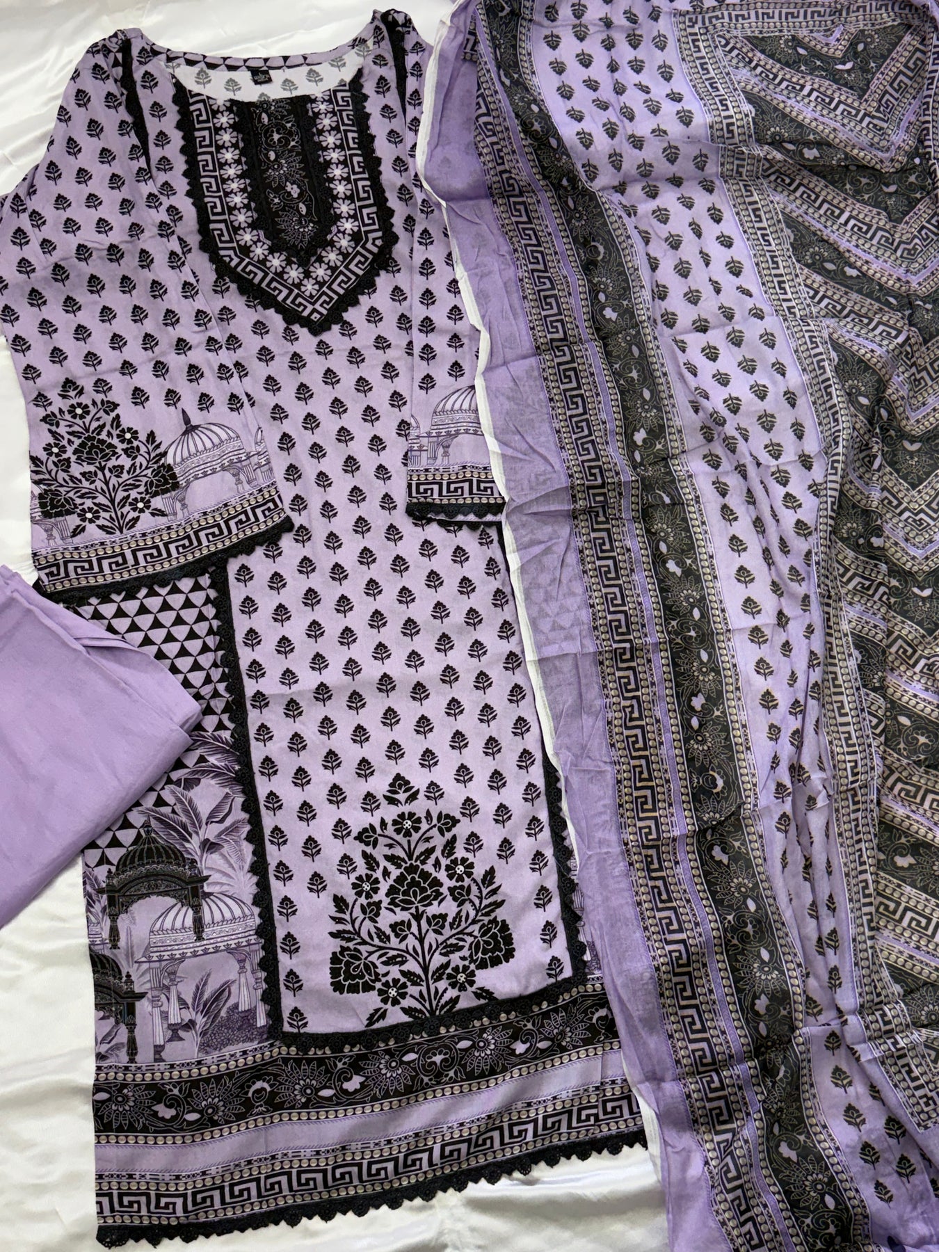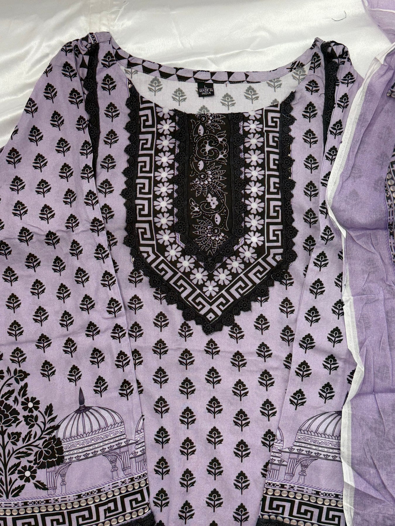 Top Lawn cotton Digital printed....embroidery on Neck...... extra lace detailing on sleeves,neck and front...