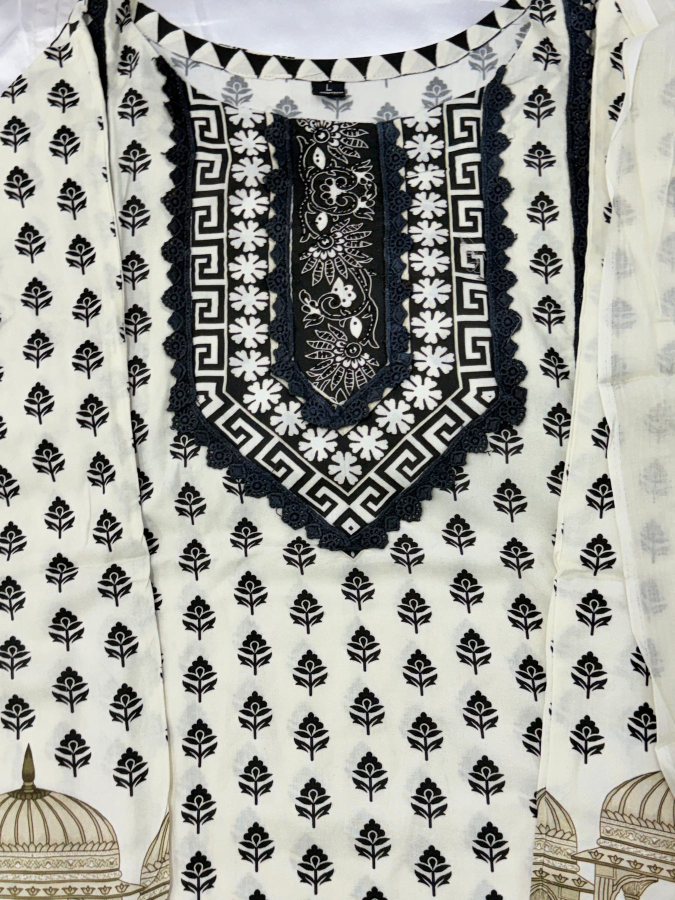 Sleeves printed with lace .. length..22 inches