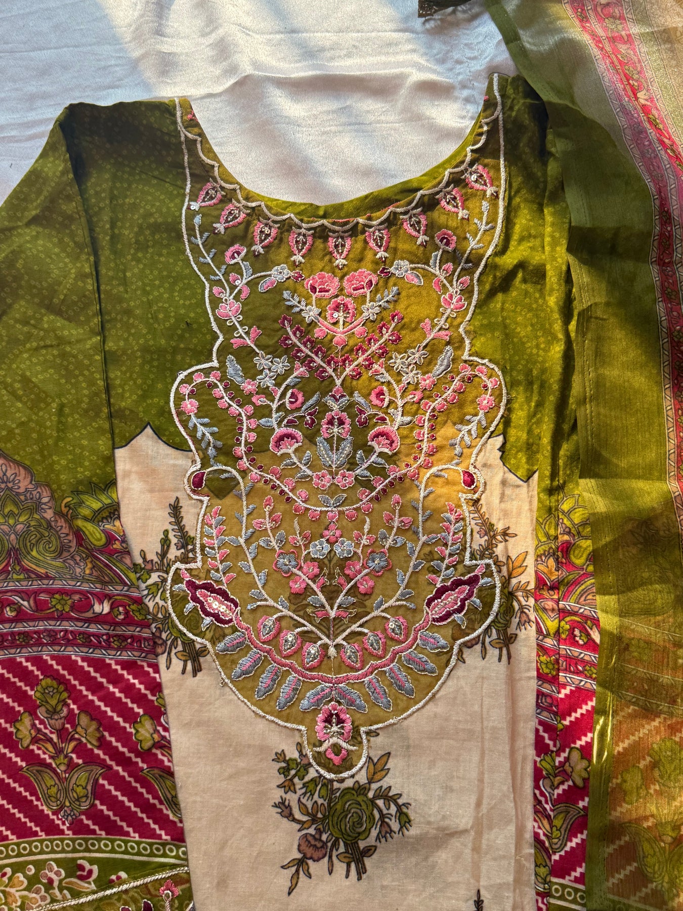 Top readymade cotton designer with beautiful embroidery patches on neck sleeves,Top,Side slit front and back attached with embroidery and laces .......Length 45 inches