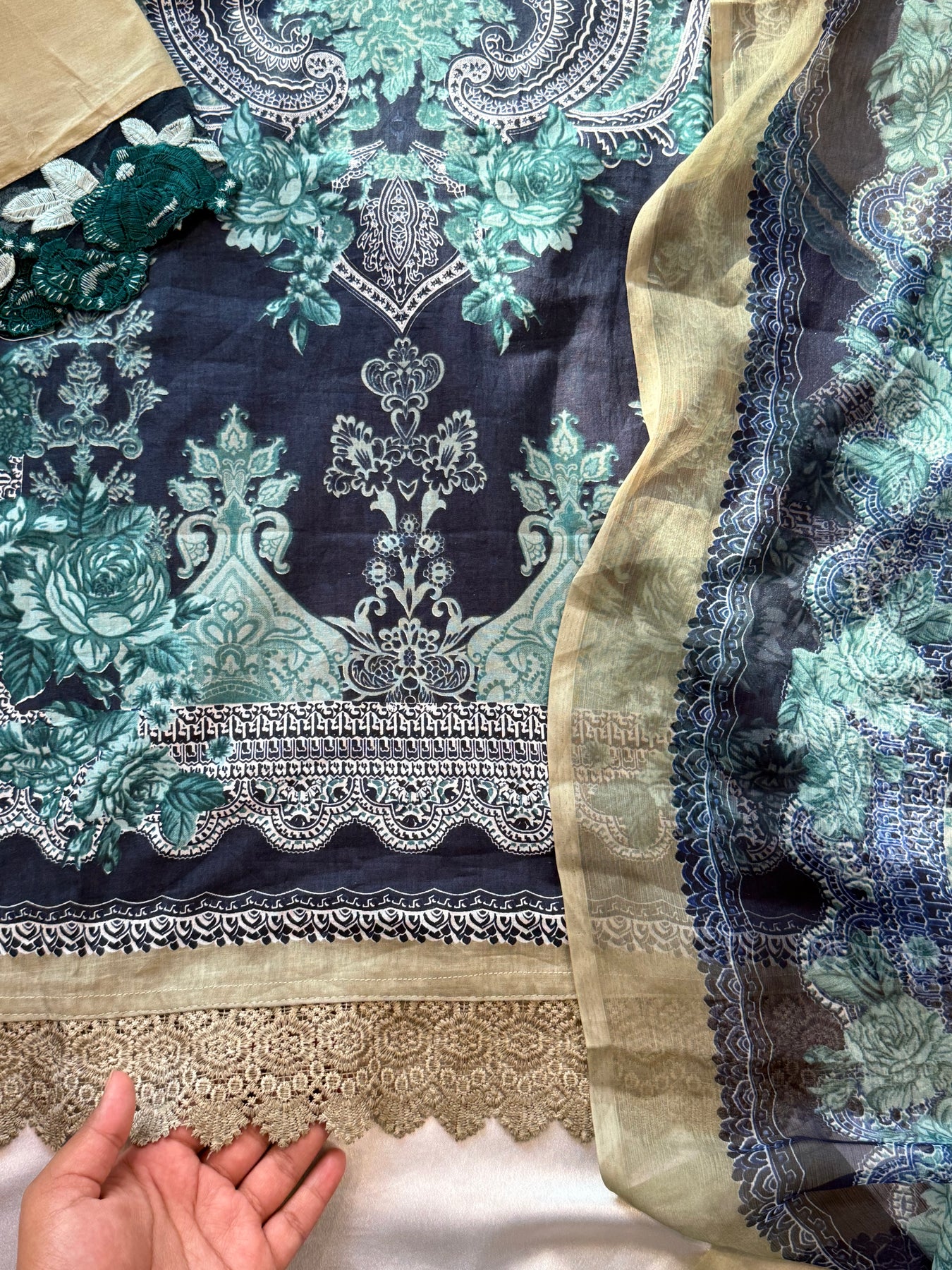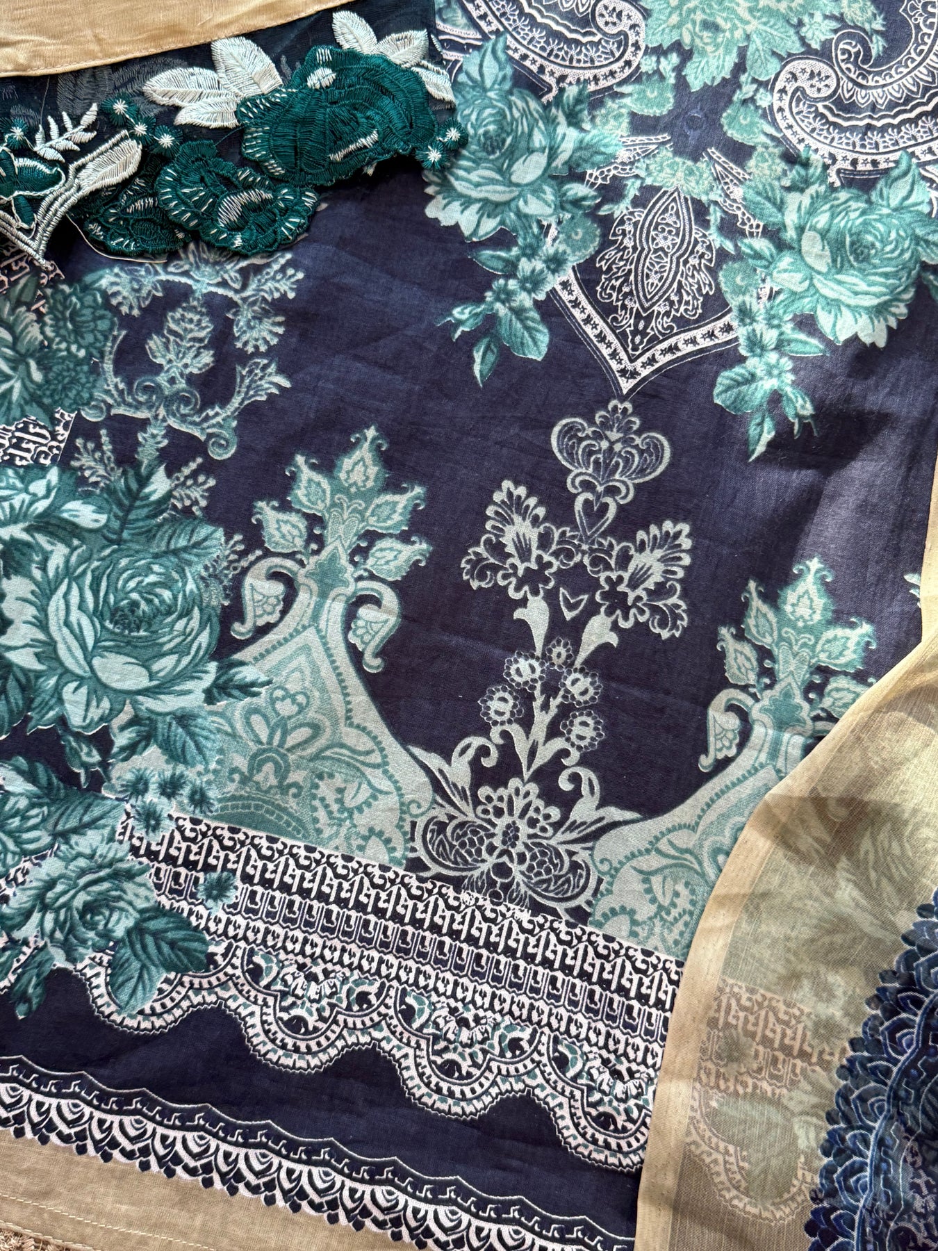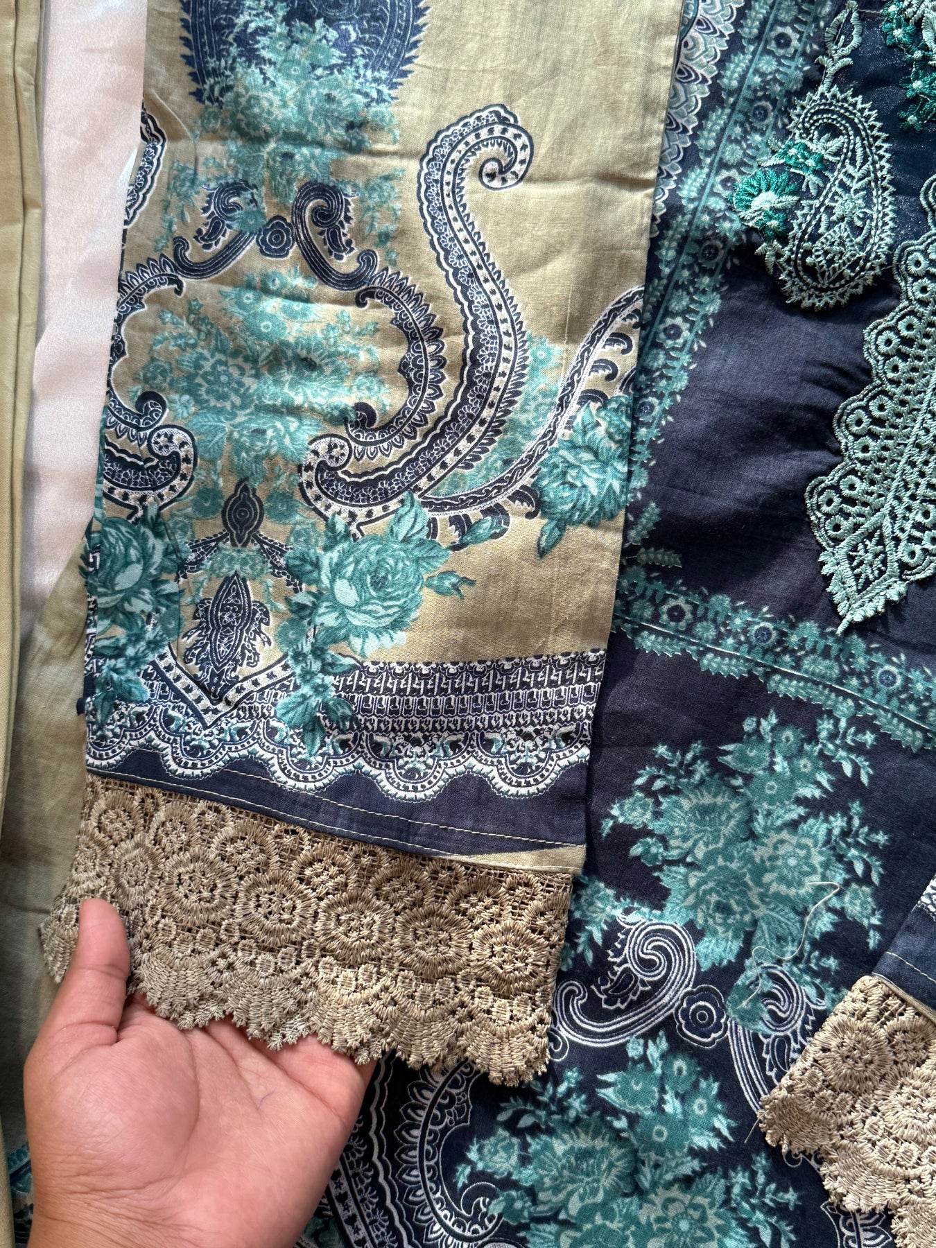 Top Lawn printed with beautiful patch  work on neck and sleeves  length 45 inches.... Sleeves printed with lace work length..21 inches