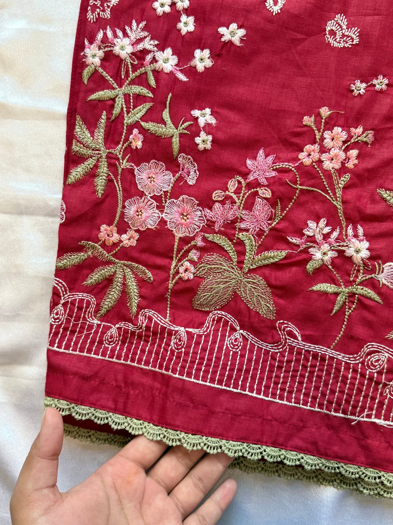 Embroidered sleeves with boarder and laces … 23 inches
