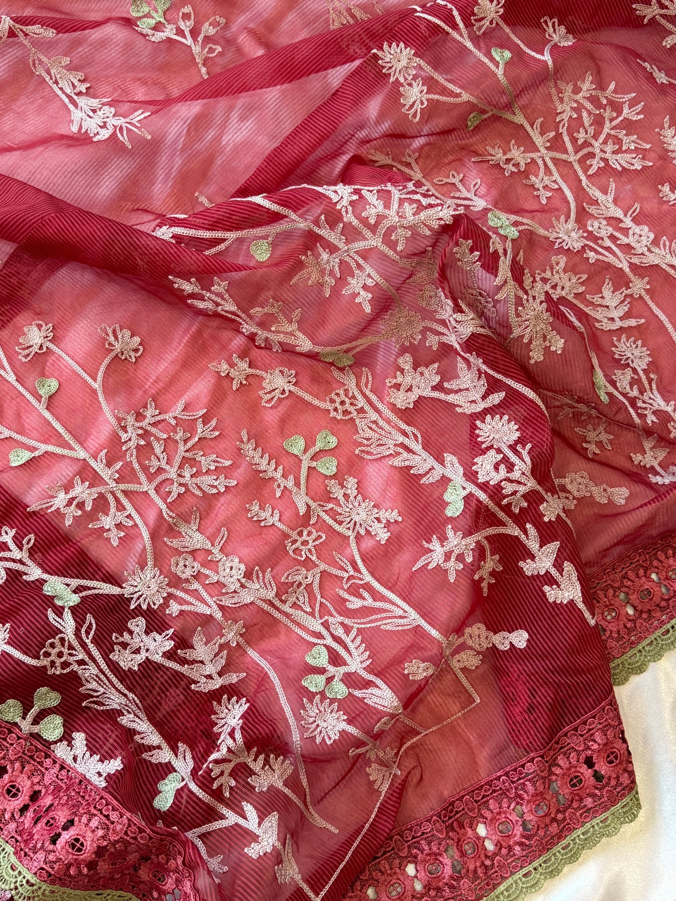 Kota checks Embroidery Dupatta with 3 side boarder and extra laces..2.25 meter full width