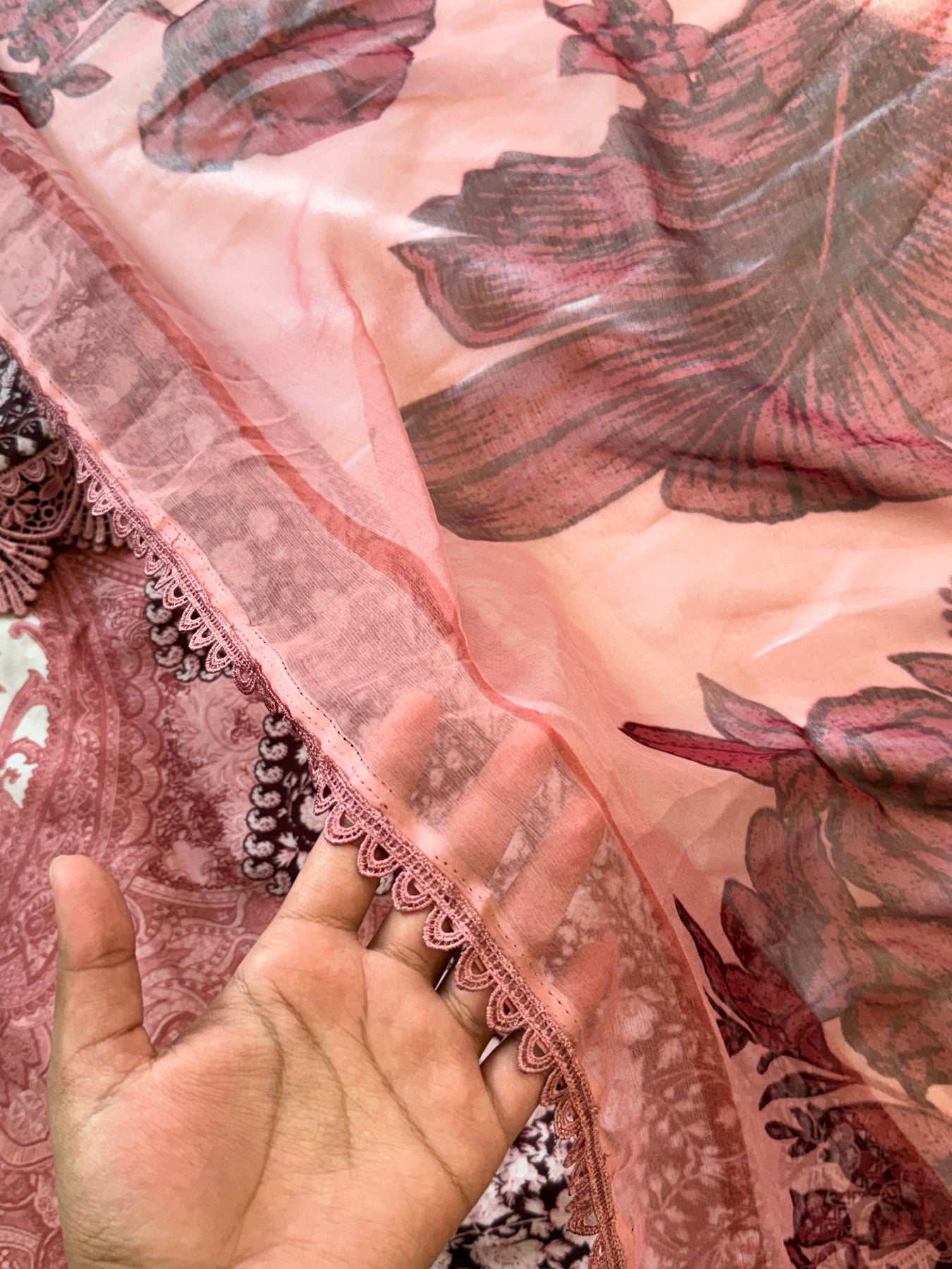Chiffon Printed Dupatta with four side laces..2.25 meter full width