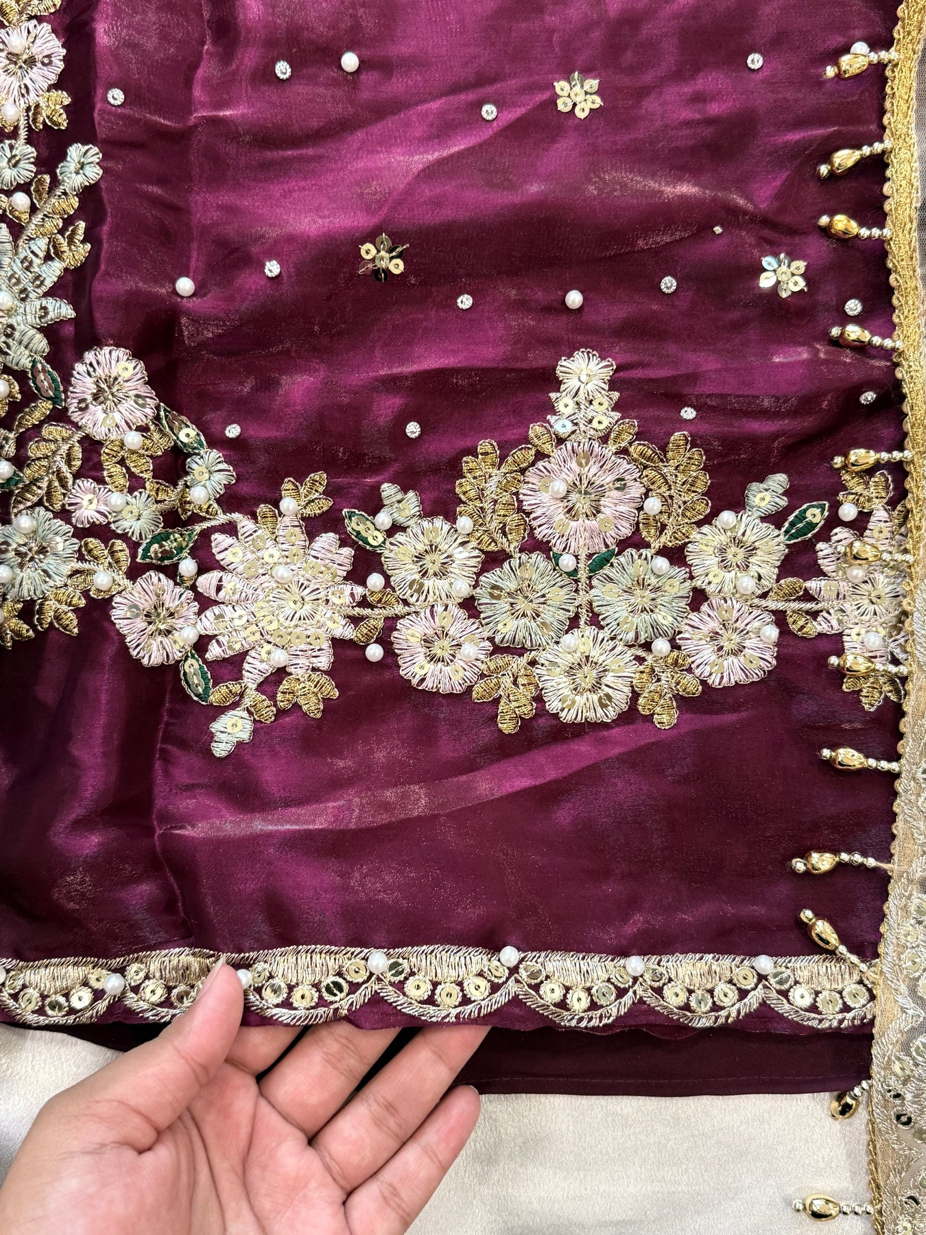 Bottom Farshi shalwar stitched with lining and embroidery...Length 41 inches