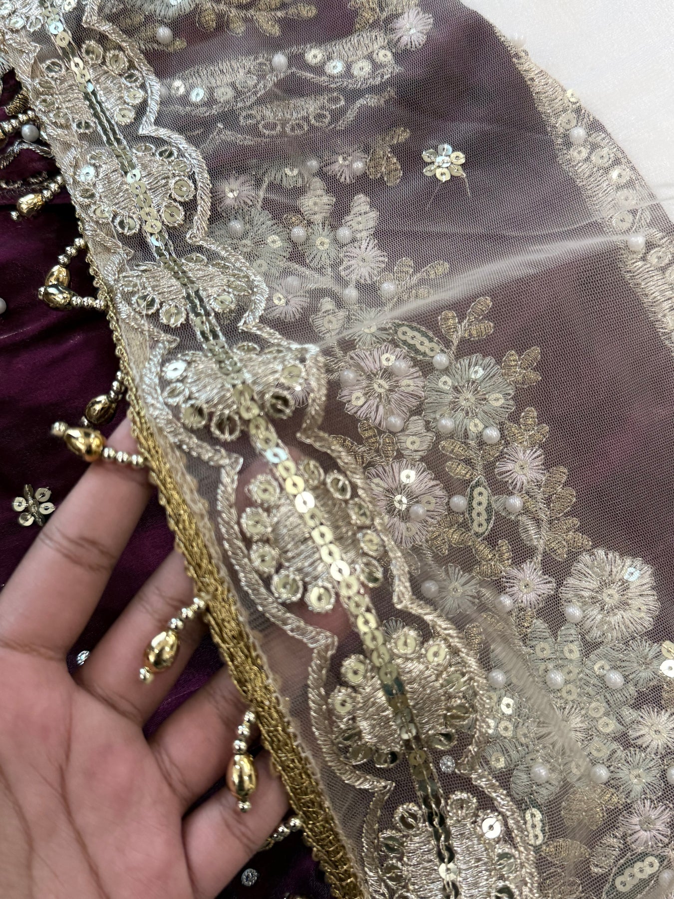 Dupatta Net with beautiful embroidery boarder and lace