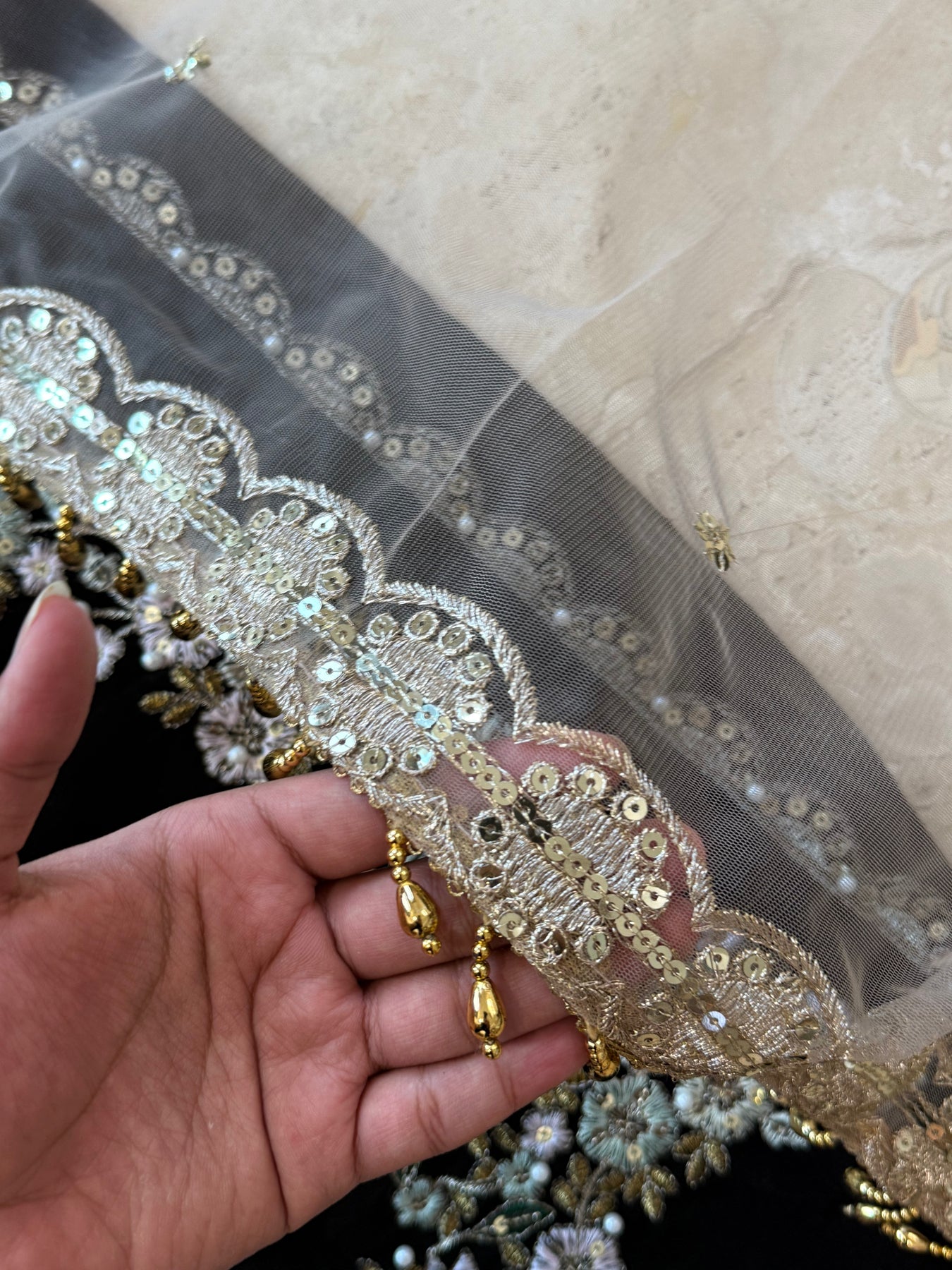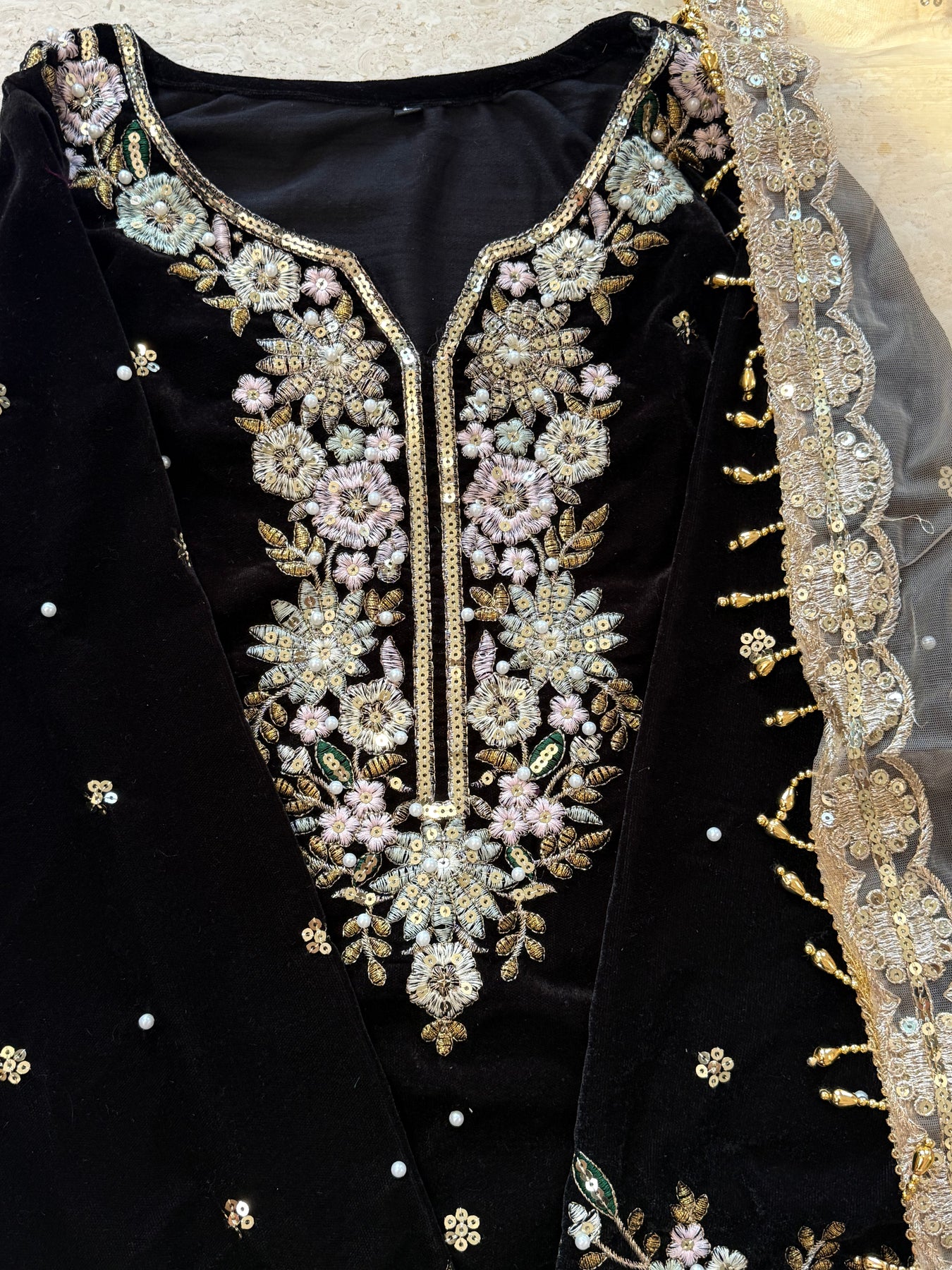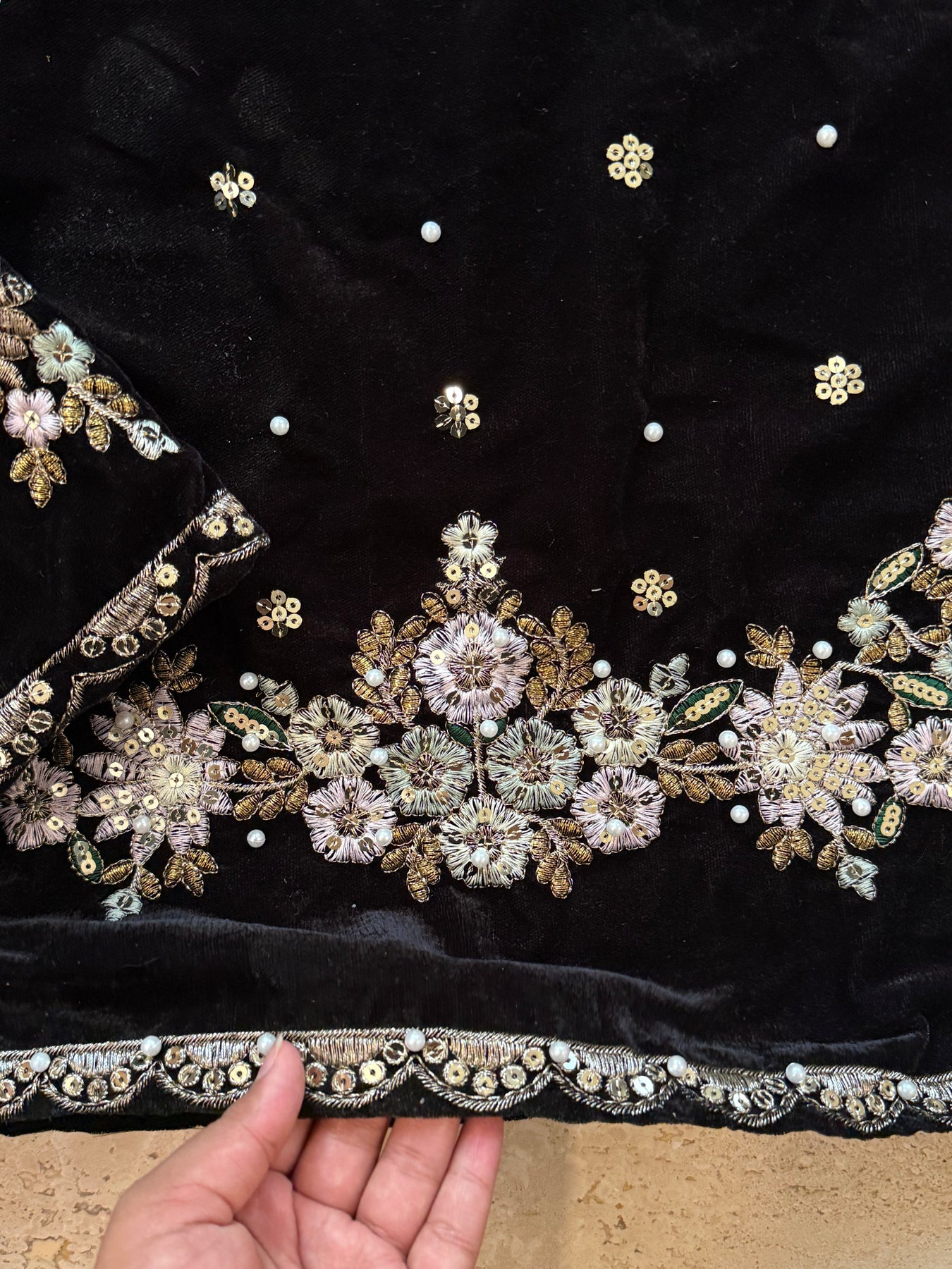 Bottom Velvet stitched Plazo style with heavy embroidery...Length 43inches