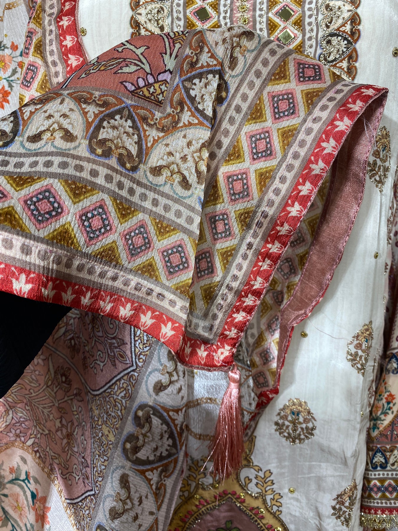 sleeves printed with lace... length..19 inches