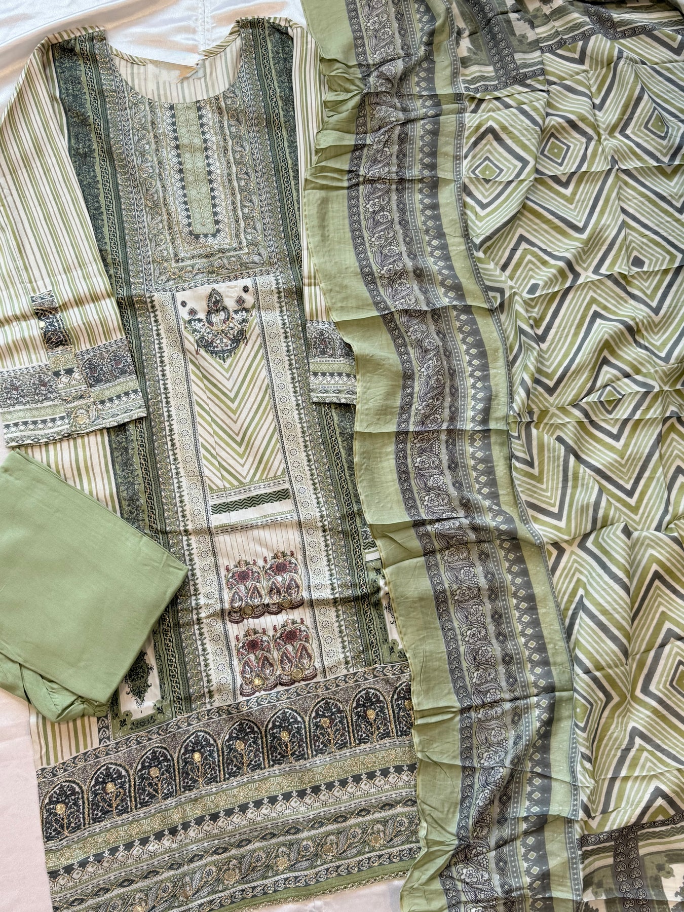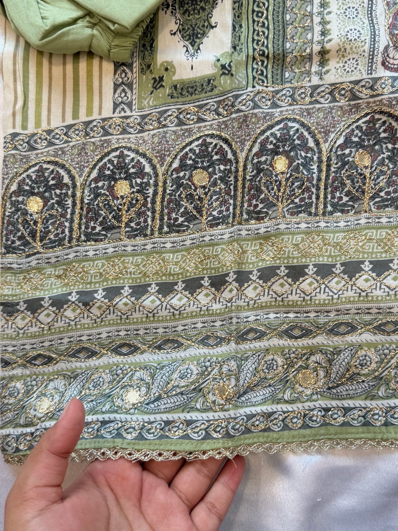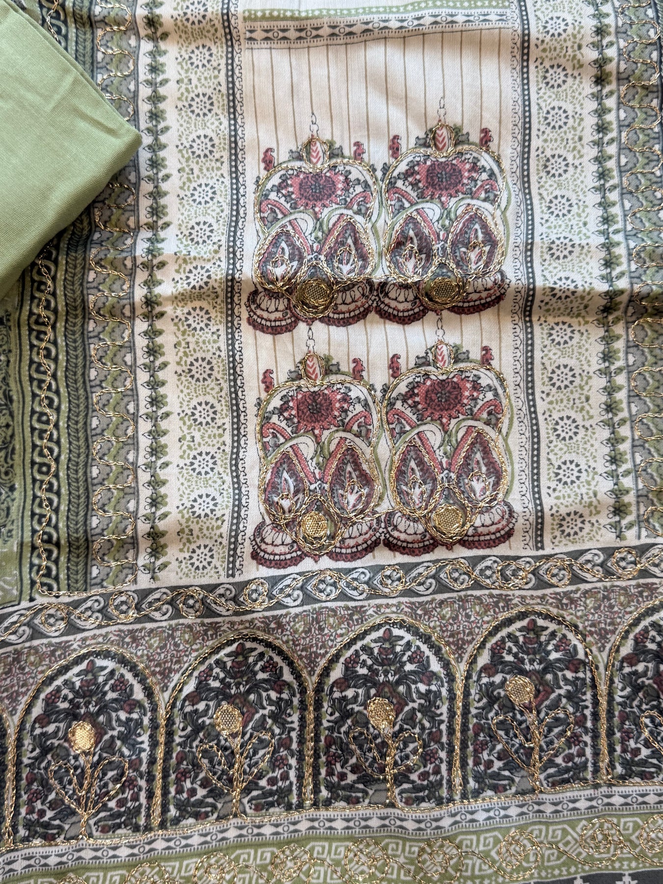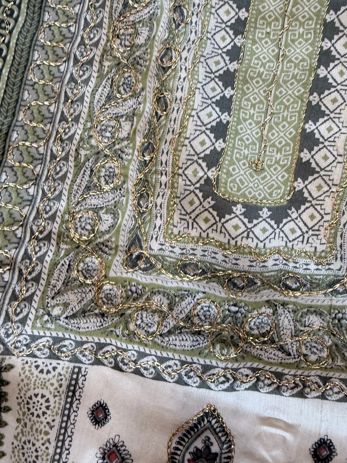 Top Lawn printed with golden thread work on neck and front.......length 43 inches