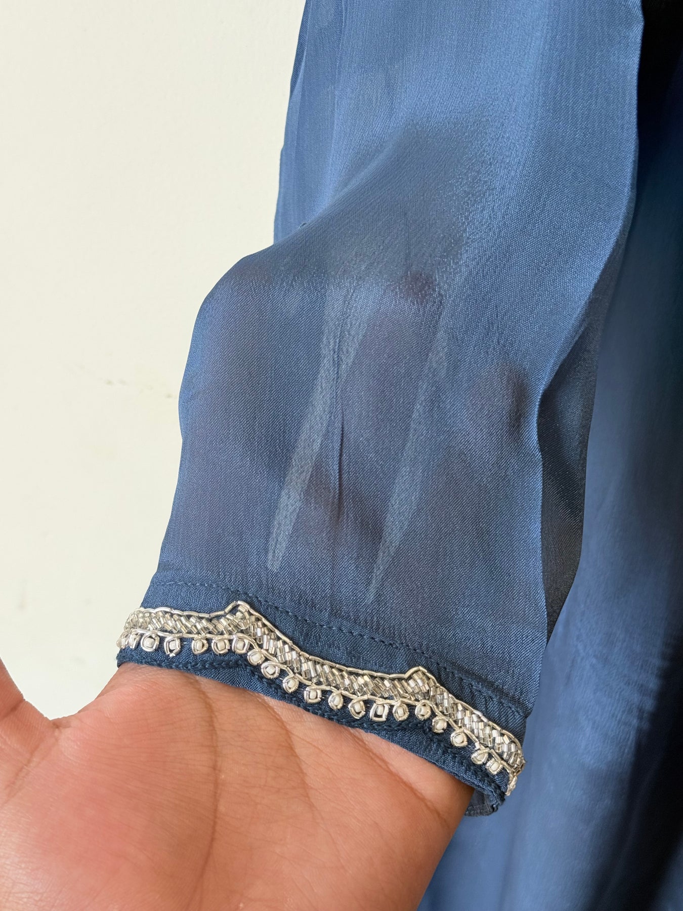 Top Pure crepe A line Frock with beautiful handwork on front.....Pakistani style neck with embroidery.... sleeves 17 inches .......attached lining.....top .length 45inches