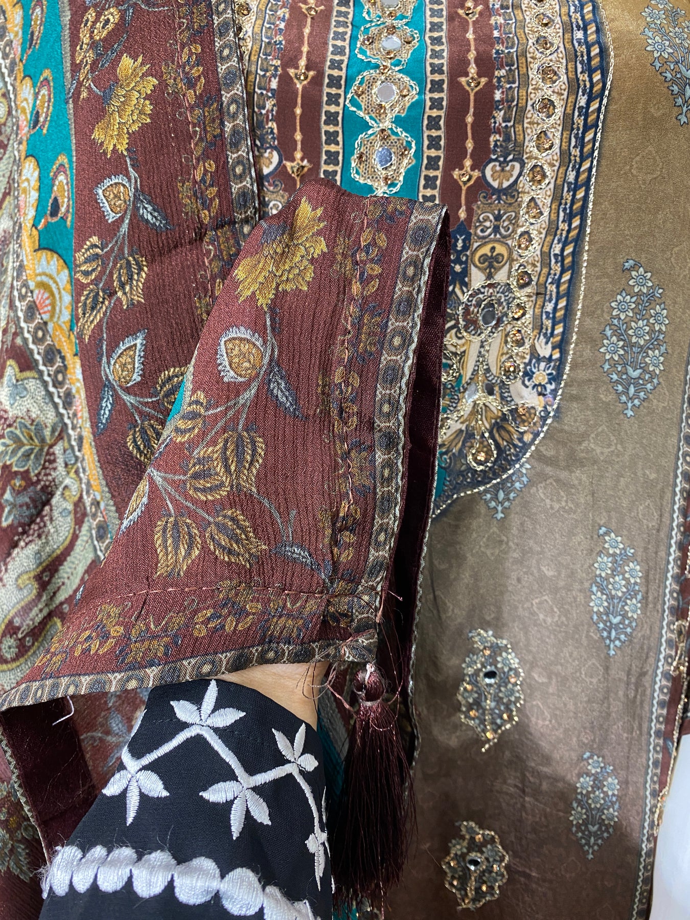 sleeves printed with lace... length..18 inches