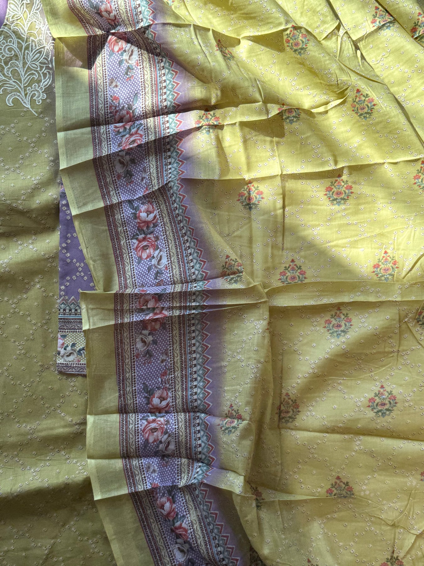 Top cotton Mill printed... beautiful embroidery panel on front …stitched with lining ...Top length 42Inches