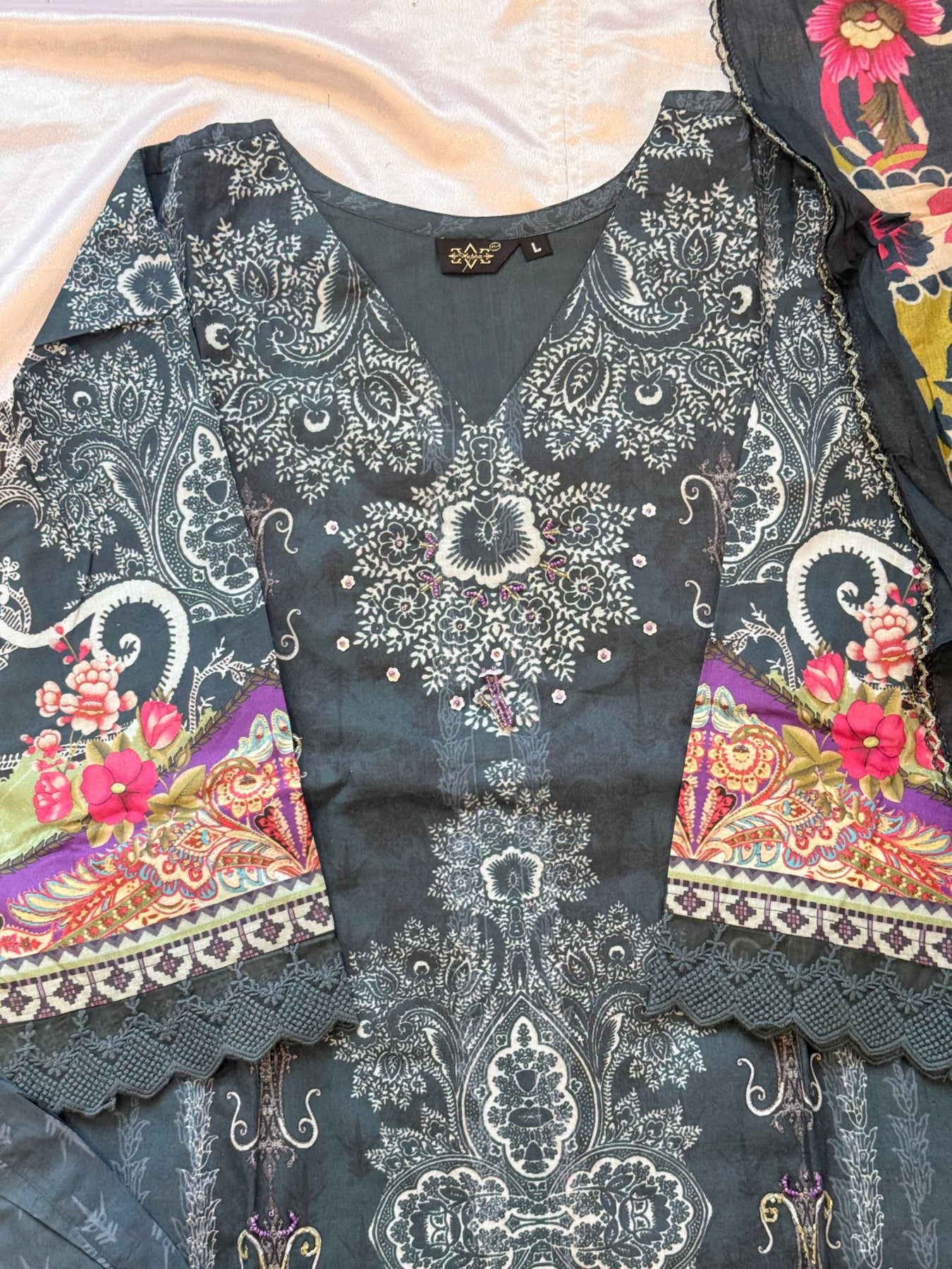 Top Lawn cotton Digital printed with lining......Beautiful.lace detailing on top front...