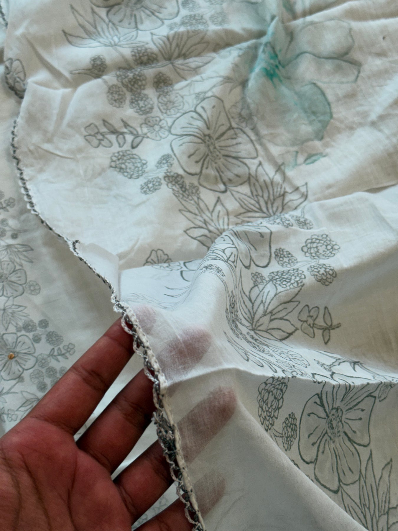 Soft pure cotton dupatta printed with qureshiya lace 2.25 meter full width